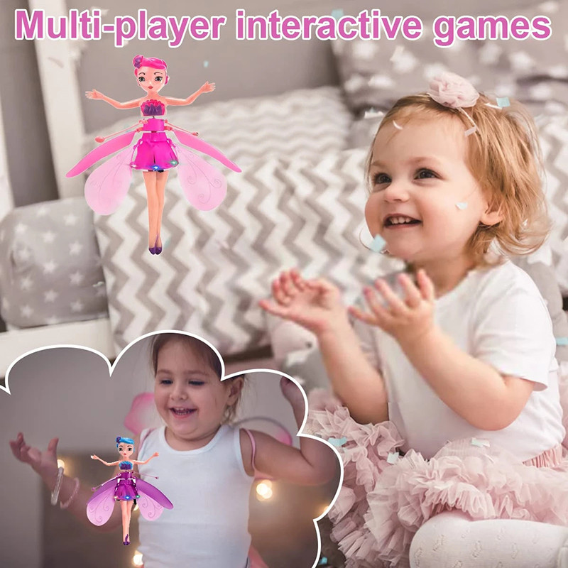 Flying Princess Fairy Doll Mini Drone Toy for Kids Girls Easy to Fly Control Birthday Gift