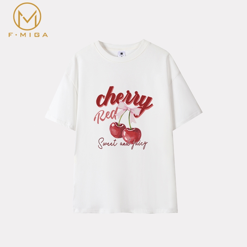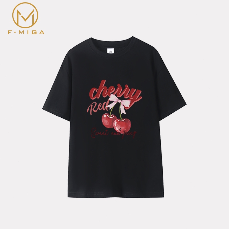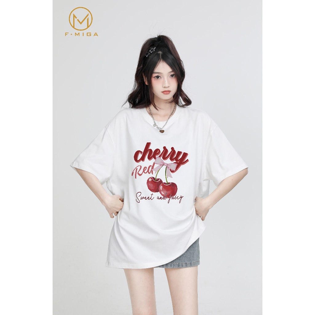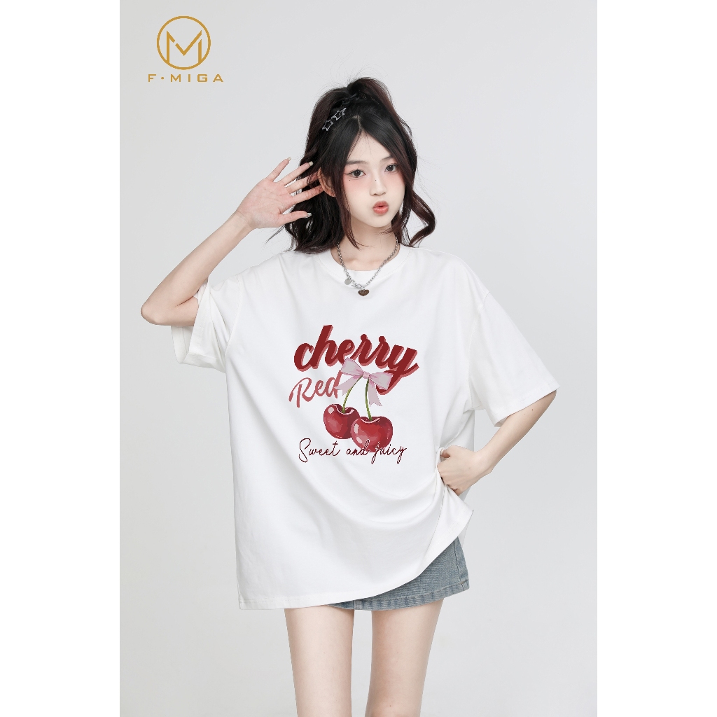 FMIGA 100%cotton baju T-shirt perempuan tshirt woman oversize korean style 衣服女裝 Cherry Bow print 上衣女