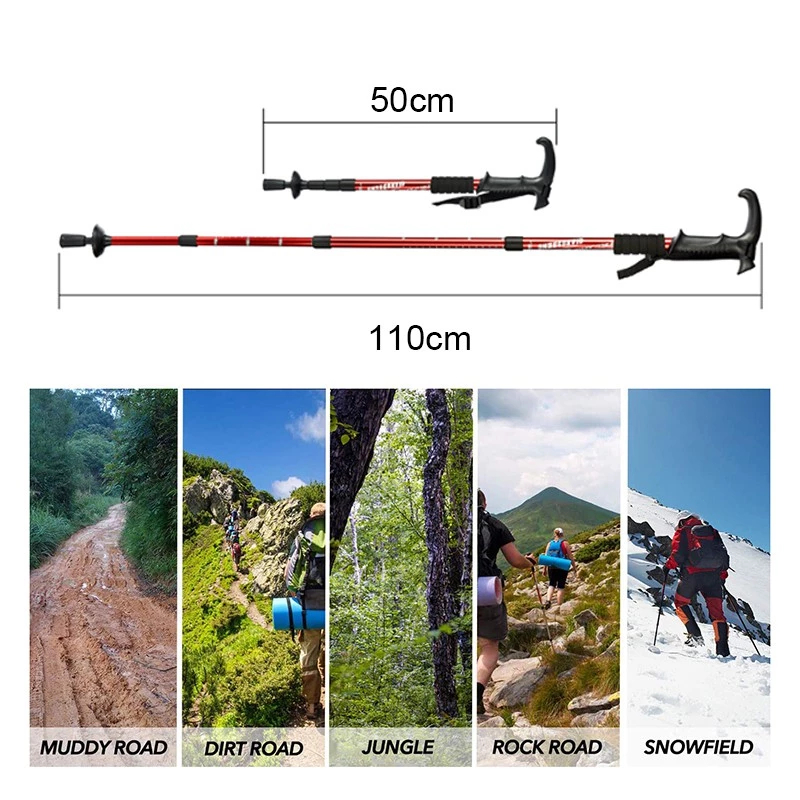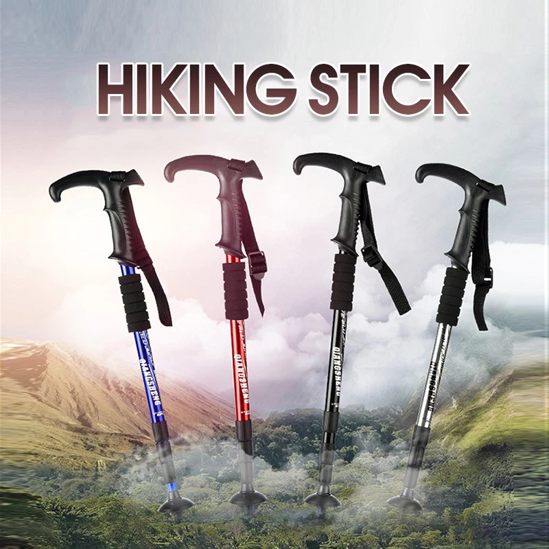 Foldable Hiking Pole Adjustable Aluminium Trekking Climbing Support Stick Tongkat Hike
