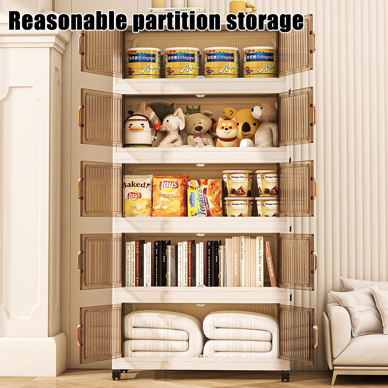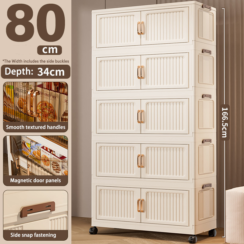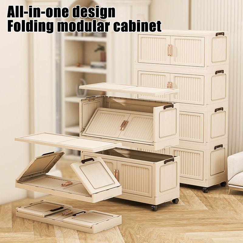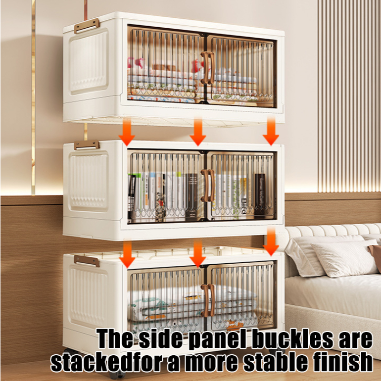 Foldable Storage Cabinet Stackable Box Almari Baju Double Magnetic Doors With Roller