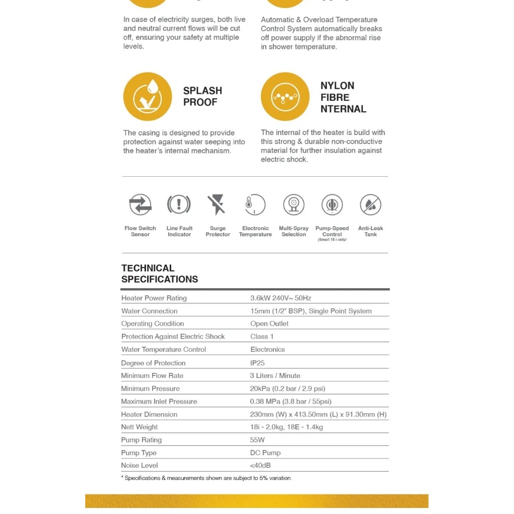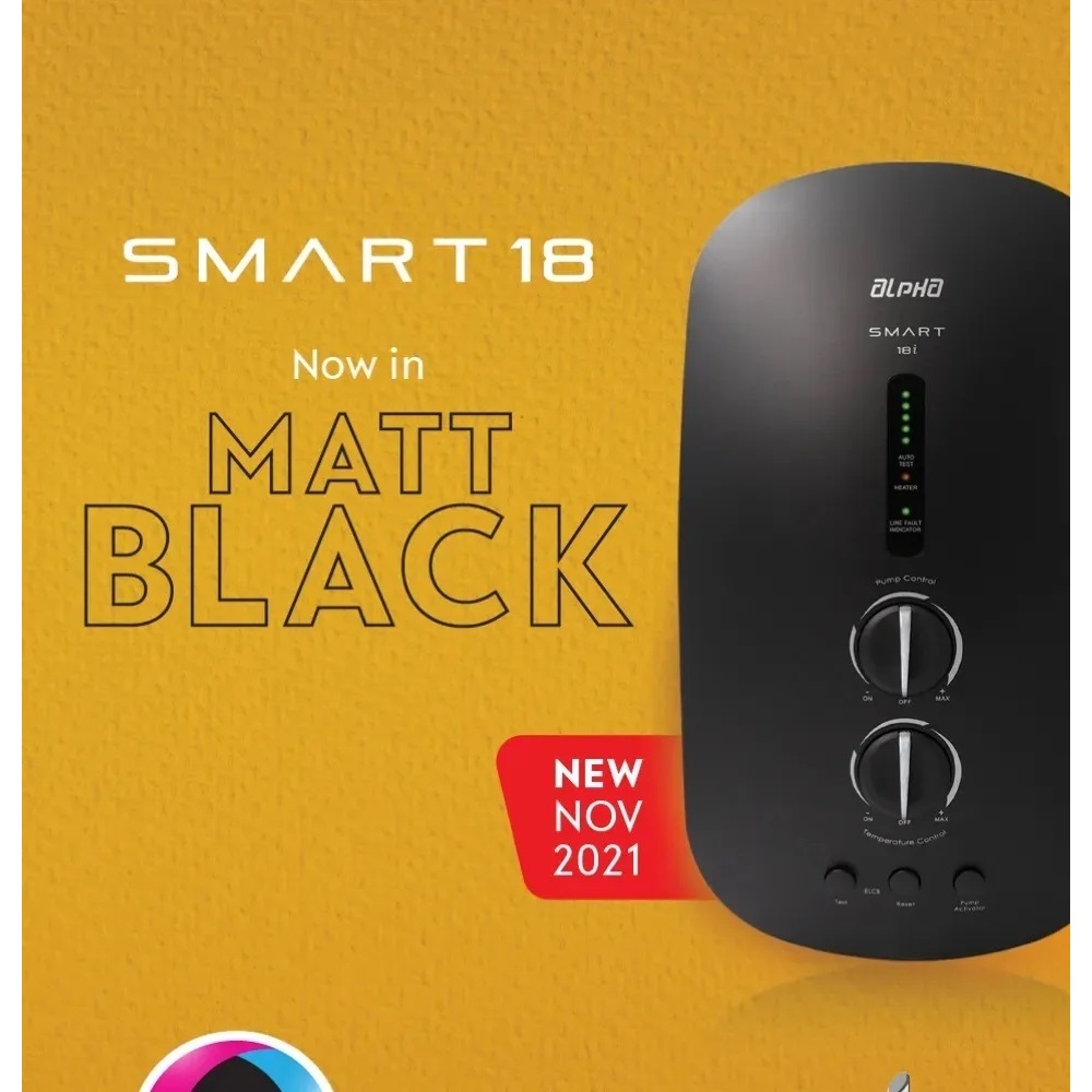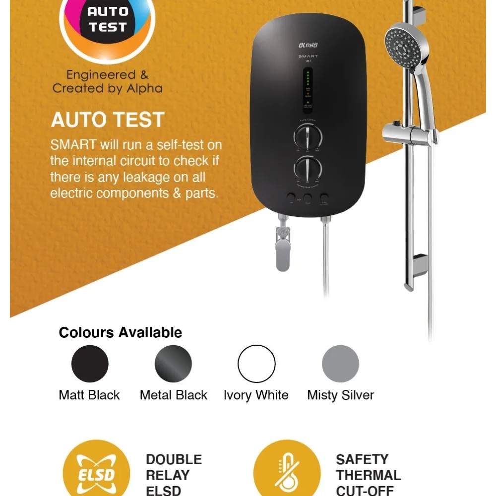 [Free Gift] Alpha Smart 18i Water Heater ELCB Auto Test DC Pump Rain Shower Matt Black Metal Black Silver White
