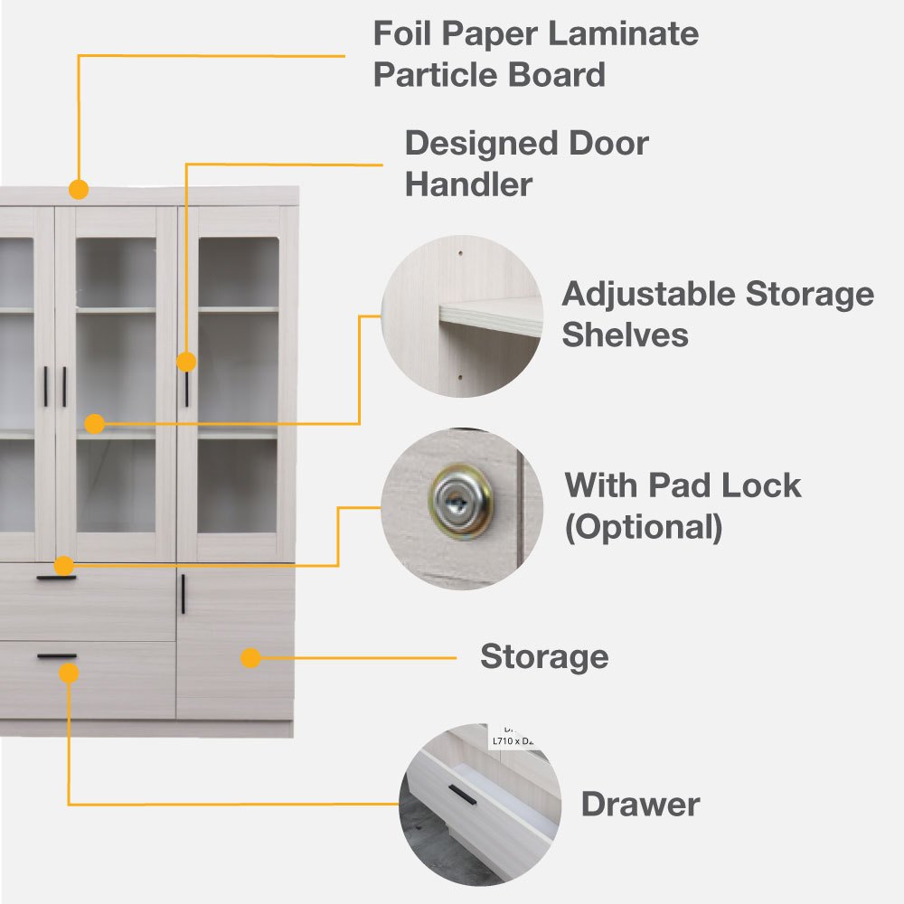 [FREE INSTALLATION] Como Home 3 Doors Bookcase with Drawers (BC13A) Almari Buku | Multipurpose Storage Cabinet