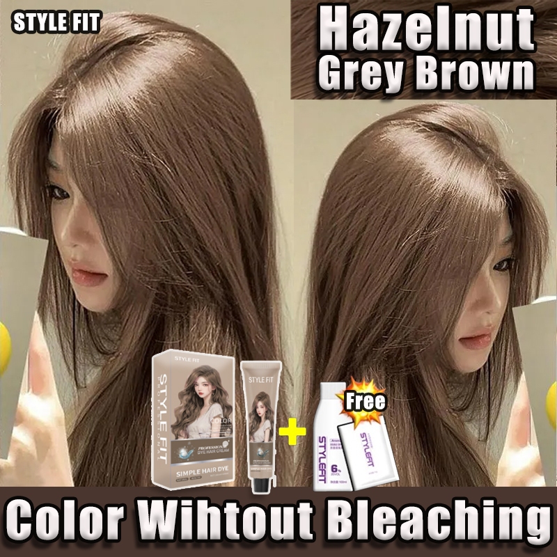 ?Free Peroxide+full set tool?STYLEFIT Hair Dye Pewarna Rambut Hair Colouring 染发膏 染发剂 Hazelnut Grey Brown 榛果灰棕 200ML