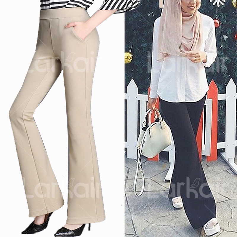 Free Shipping Women Long Casual Pants Palazo Bootcut Muslimah Plus Size Loose Office Pants Black Straight Celana Vintage