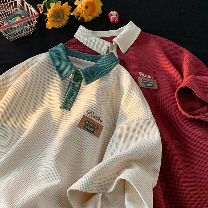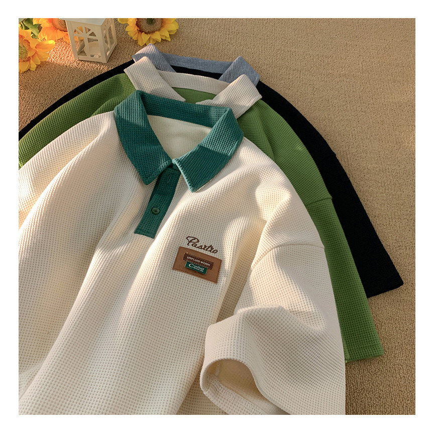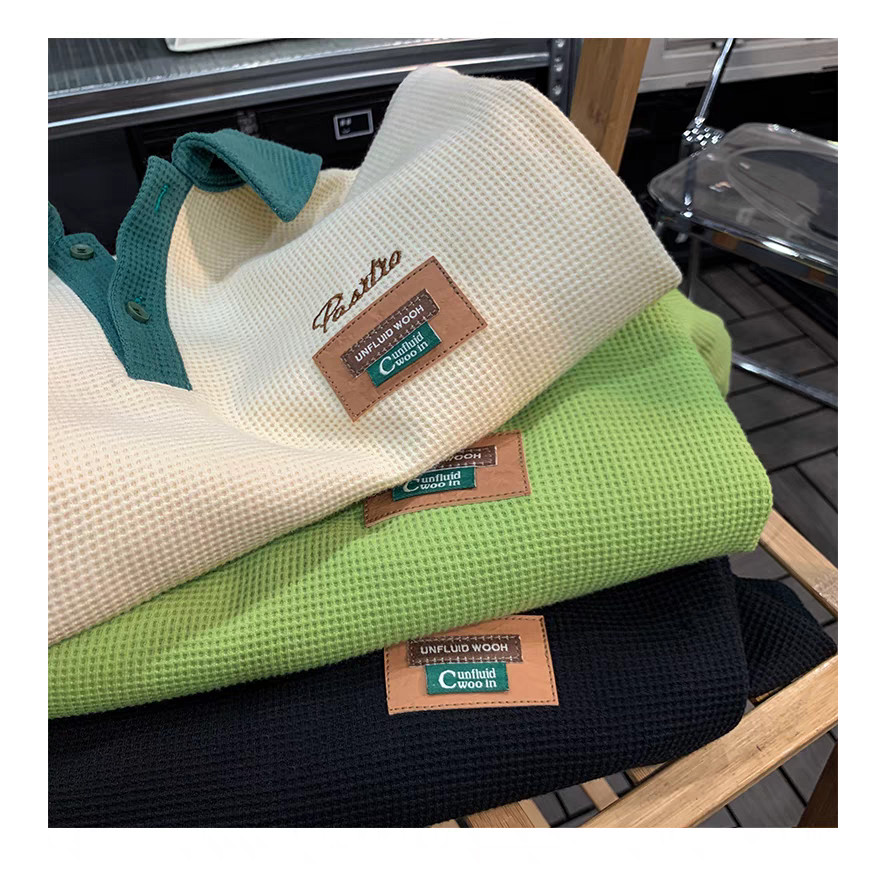 【From Johor】CLIFF Baju POLO lelaki Waffle Summer Short-Sleeved Unisex Microfiber Printed Fashion Color Matching Retro