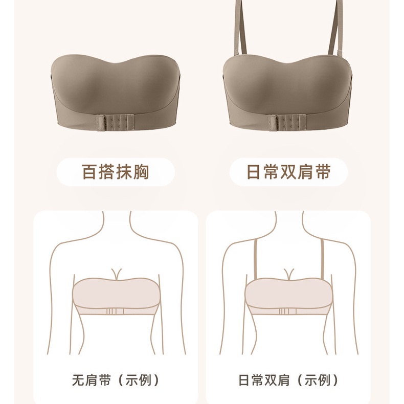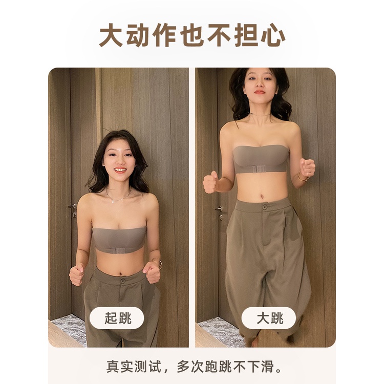Front Buckle Strapless Underwear Women Small Chest Gathering Invisible Anti-Slip Tube Top Wrap Breast Anti-Glare Seamless Bra