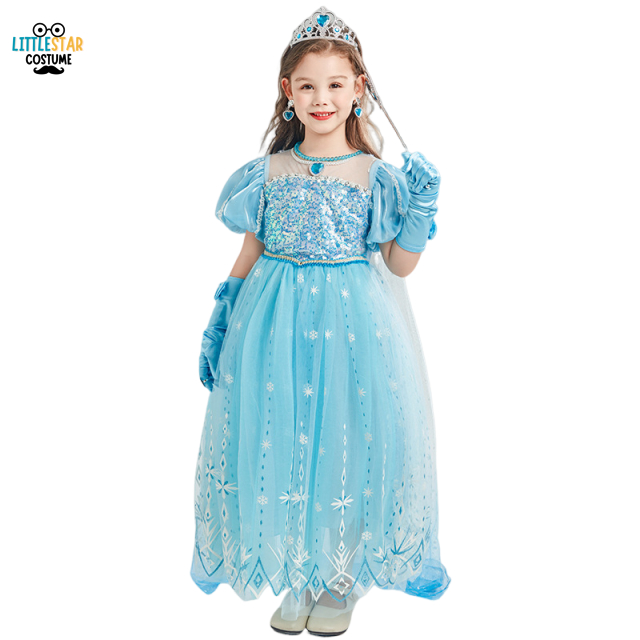 Frozen Elsa & Anna Movie Character Princess Dress for Girls – Fairy Tale Cosplay Costume for Halloween & Party