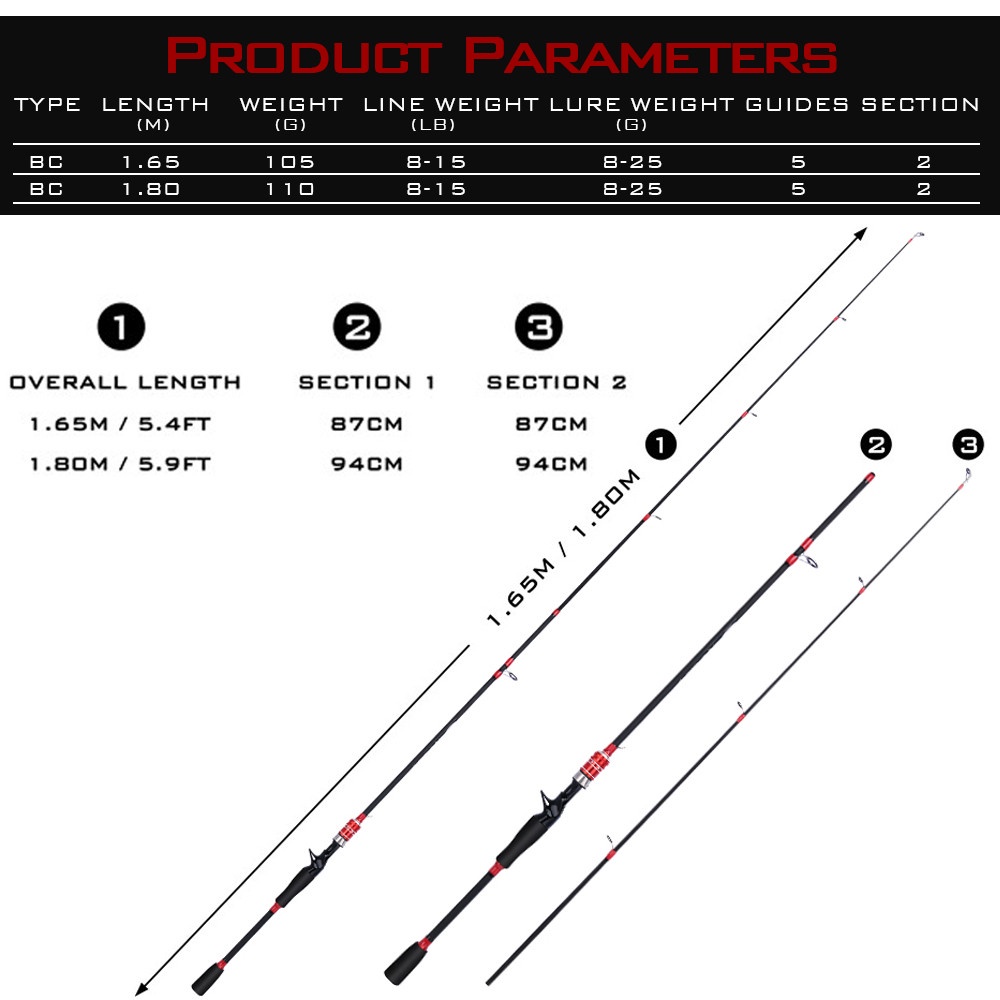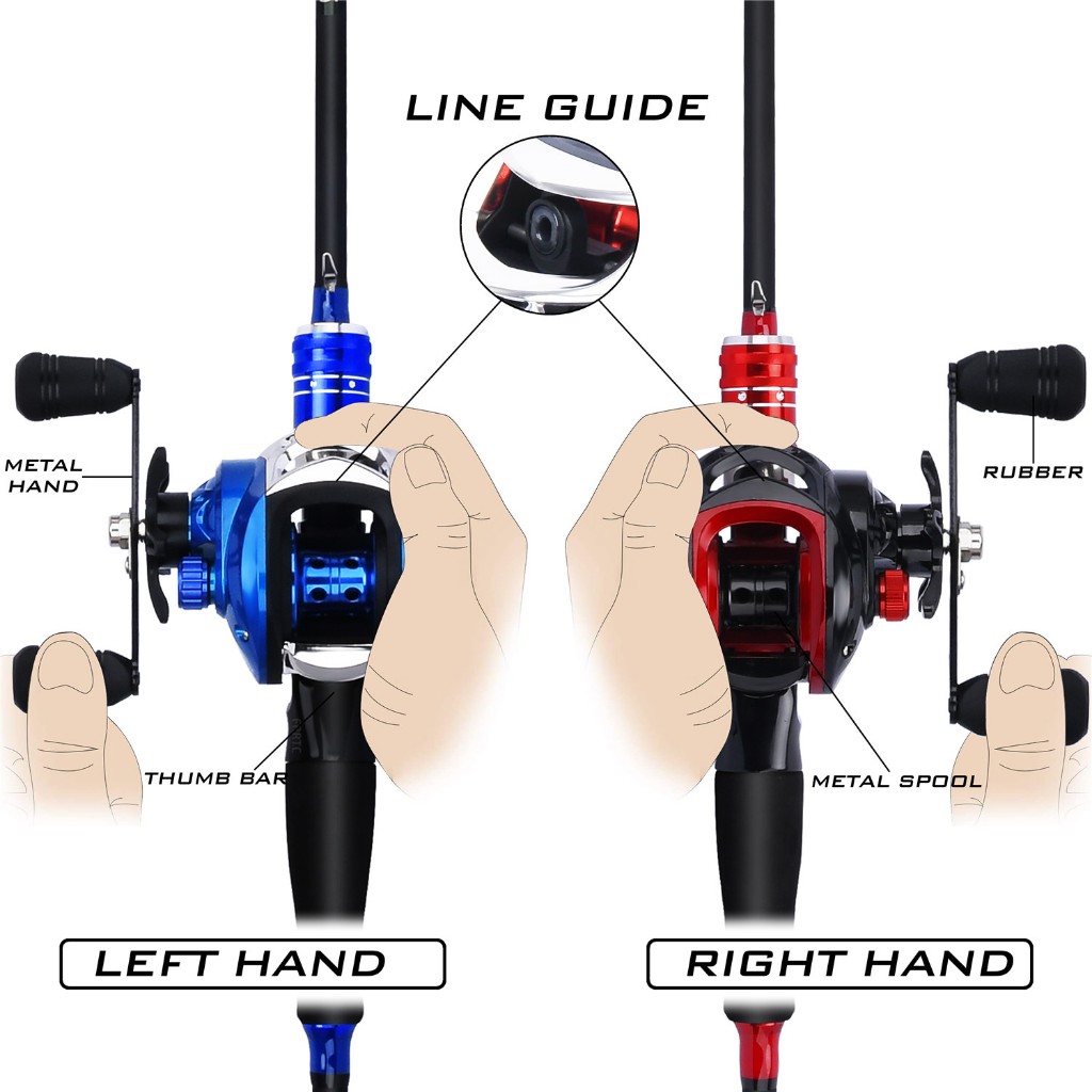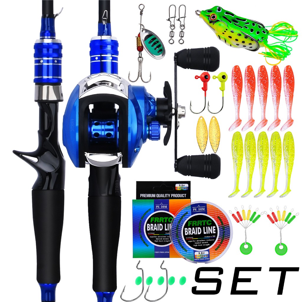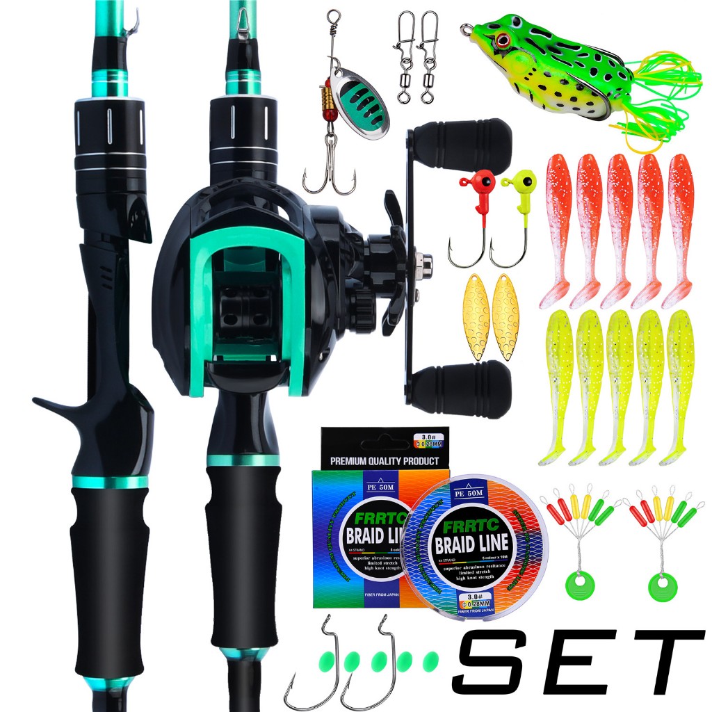 FRRTC Casting Fishing Rod Baitcasting Fishing Reels Left/Right Hand 2 Section Carbon Fishing Rod 7.2:1 Gear Ratio Set