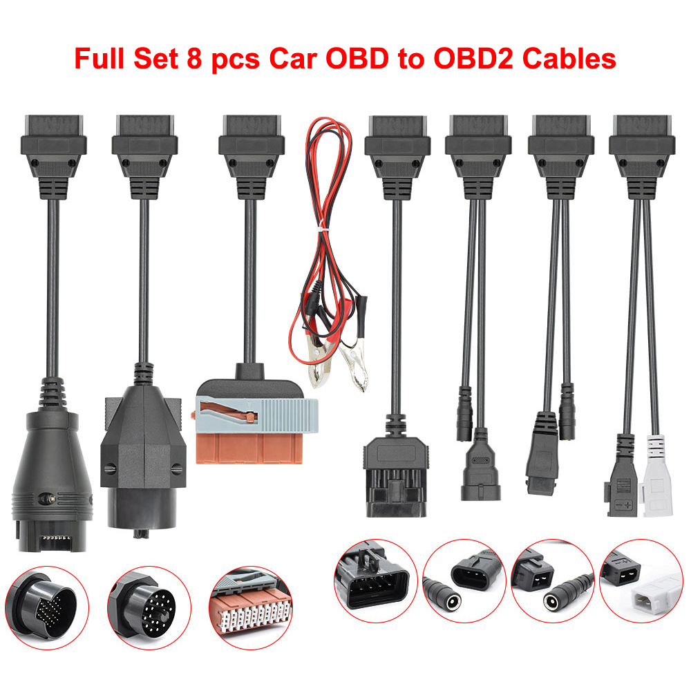 Full Set 8 Cables Car Truck Extension Cables OBD To OBD2 Scanner Car Diagnostic Auto Tool For Scania For cdp TCS Pro For BMW