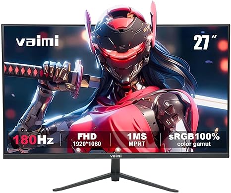 Gaming Monitor 27 inch 180Hz 1ms PC Gaming Computer Monitor -FHD 1080P, FreeSync, 1 x HDMI 2.1, 1 x Display Port 1.4, 1 x USB, IPS, Blacklevel Adjust, VESA Compatible,Black
