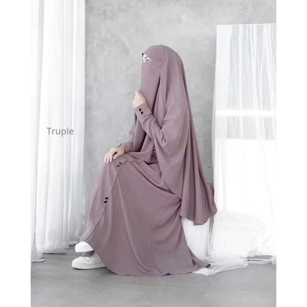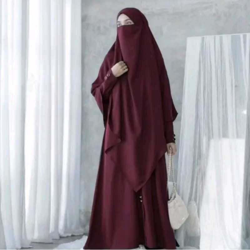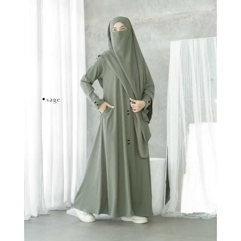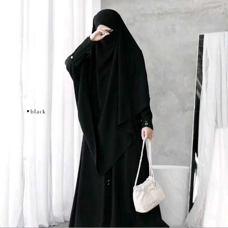 Gamis Umrah Hajj Abaya Black Ayra Muslimah Set Khimar Simple Luxurious ML XL XXL Crinkel