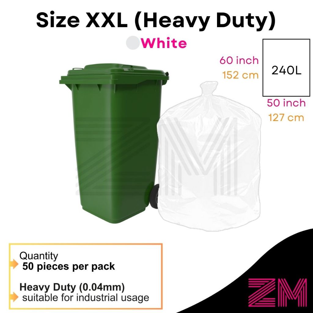 Garbage Plastic Bag EXTRA Large XL XXL Heavy Duty 垃圾袋 HDPE Plastik Beg Sampah XL XXL Plain/Black Thick (120L/240L)