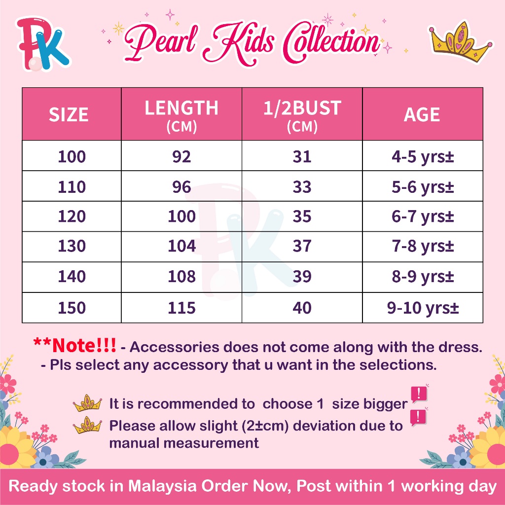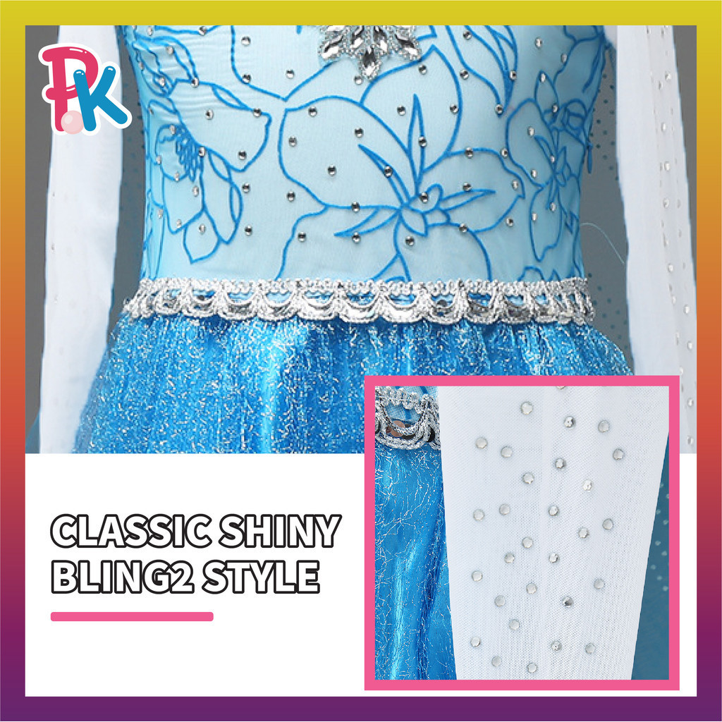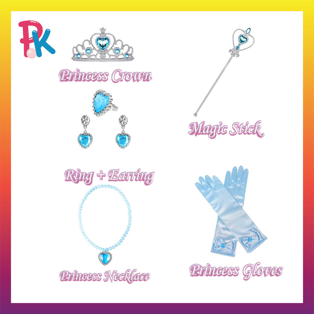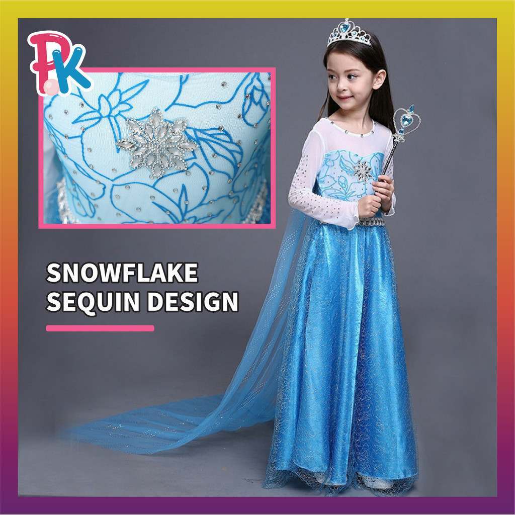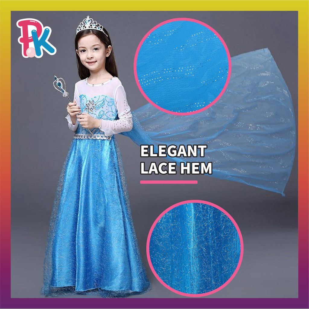 Gaun Budak Perempuan Baju Frozen Puteri Princess Elsa Kenduri Party Costume Dress Frozen