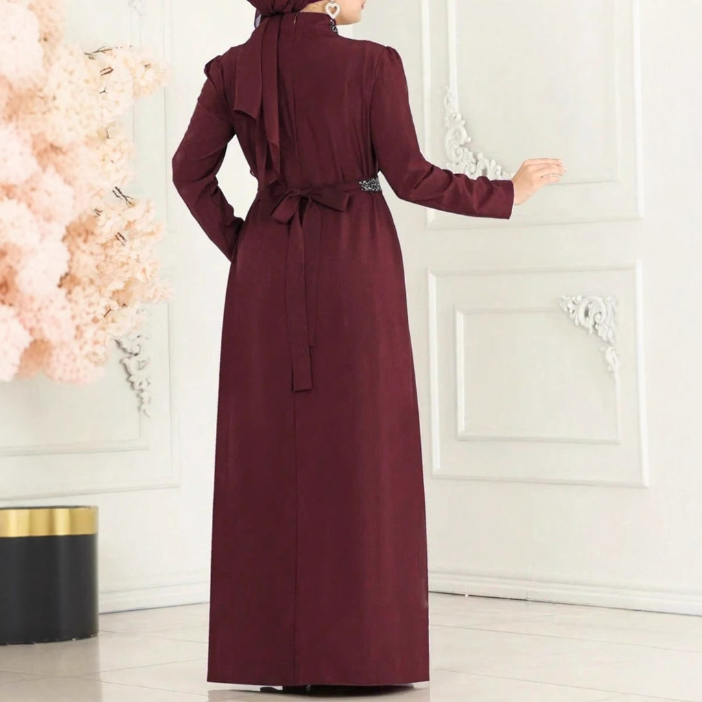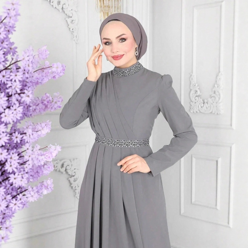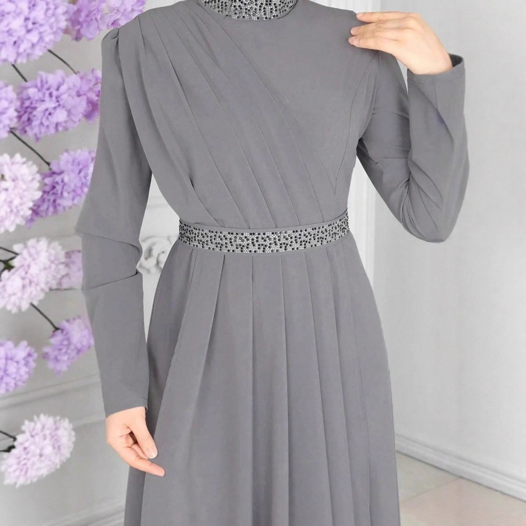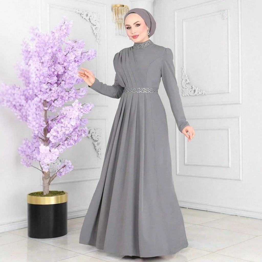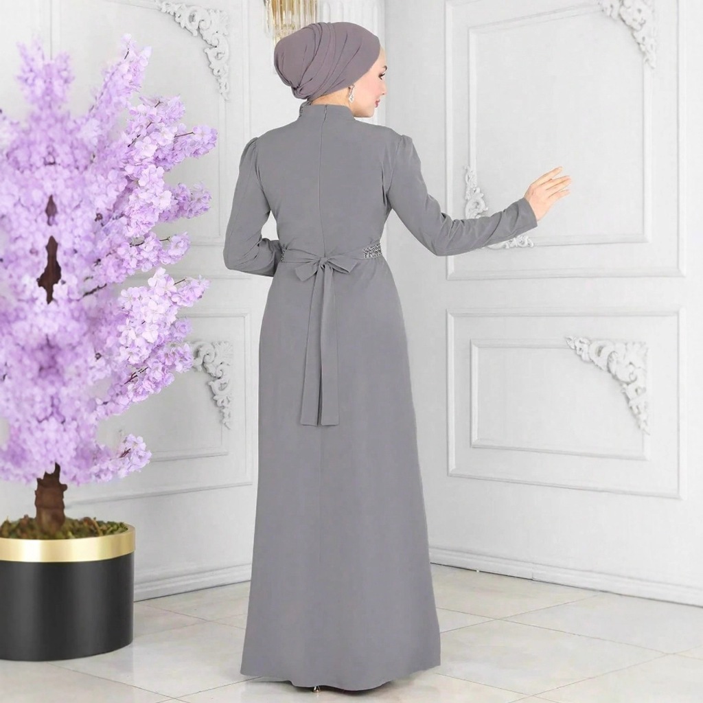 GDTIMA Abaya Dress Turkish Arabic robe Jubah Muslimah Baju Raya Elegant Grey Dinner Dress