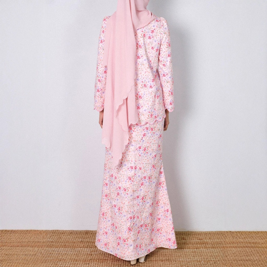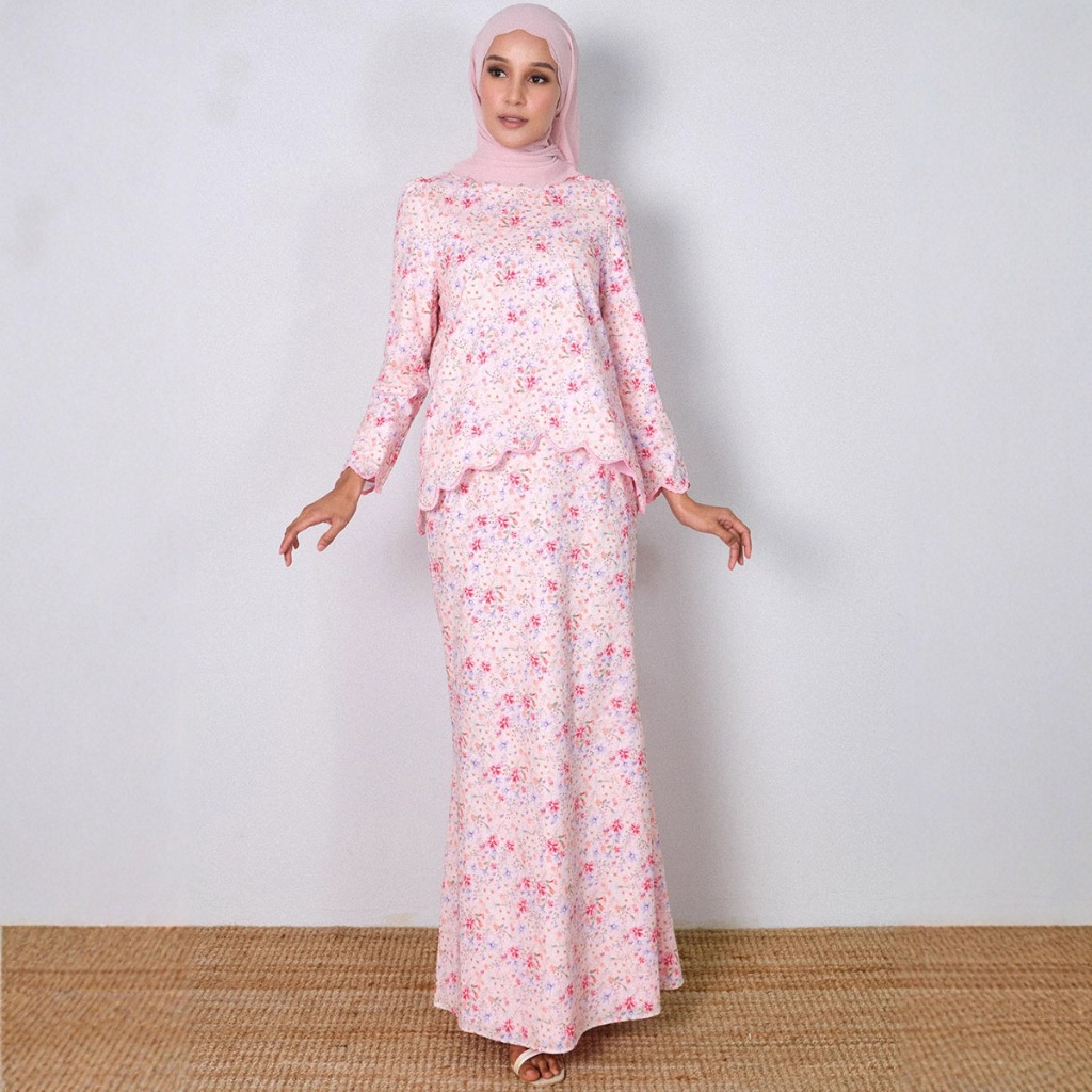 GDTIMA NEW Baju Kurung Women Modern Flower Set Kecil Raya Muslimah Ironless Clothing Green Set