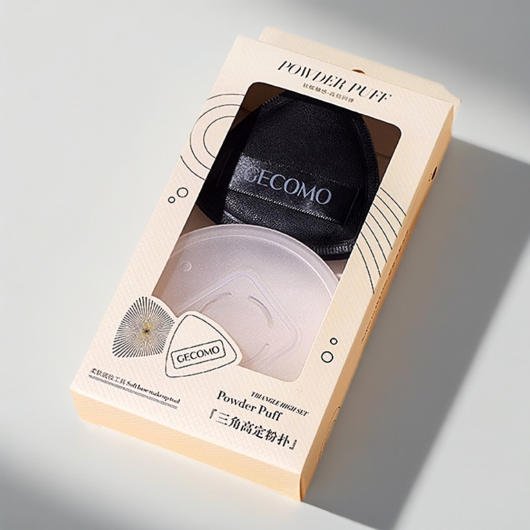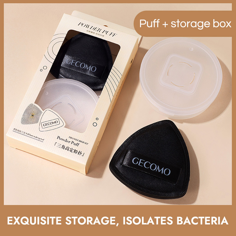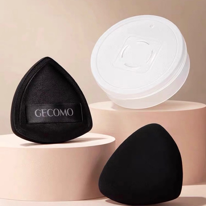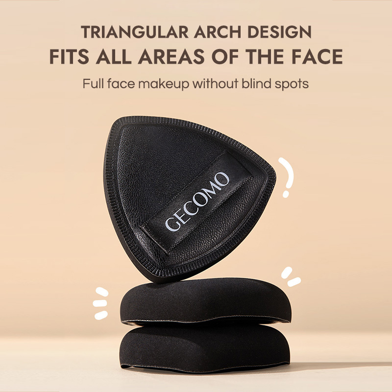 GECOMO Leather Makeup Puff Pu, Triangular Arc Design, Saves Liquid Foundation