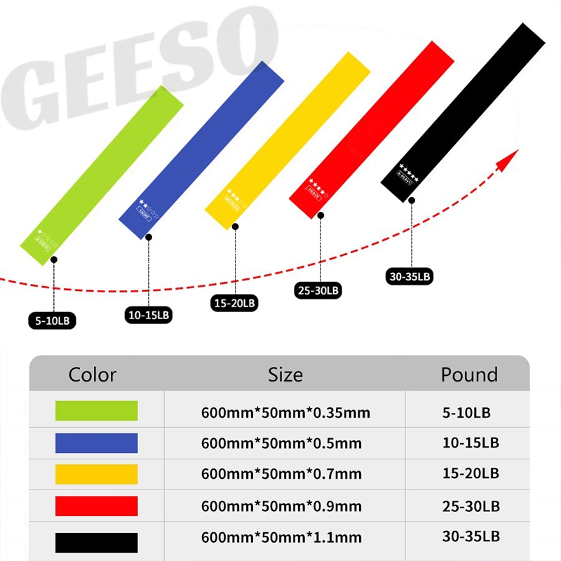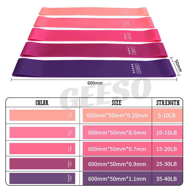 GEESO 5PCS/Set Hip Resistance Bands Yoga Squat Elastic Band Yoga Band Exercise Fitness Weight Loss Workout Band 瑜伽弹力带