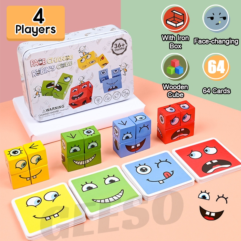 GEESO 80Pcs Cube Face Changing Building Blocks Board Game Expression Wooden Puzzle Blocks Educational Toys For Kids Gift 变脸魔方积木