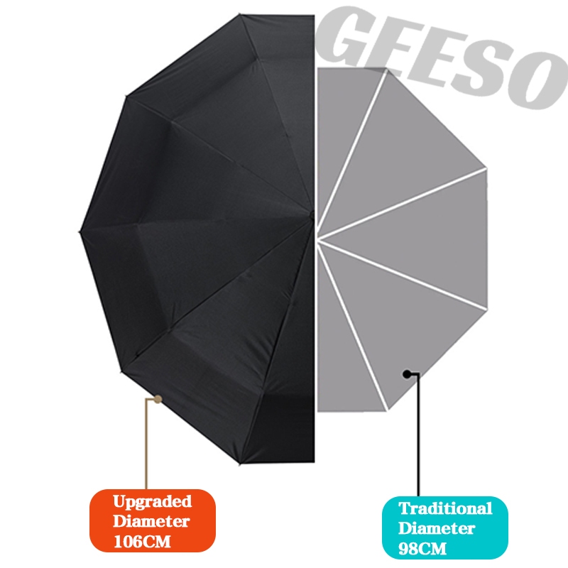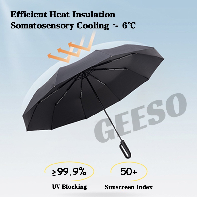 GEESO Dual-Use Sun Rain Automatic Umbrella With Buckle Handle 20 Ribs UPF50+ Windproof Folding Umbrella Large 106cm 全自动挂钩雨伞