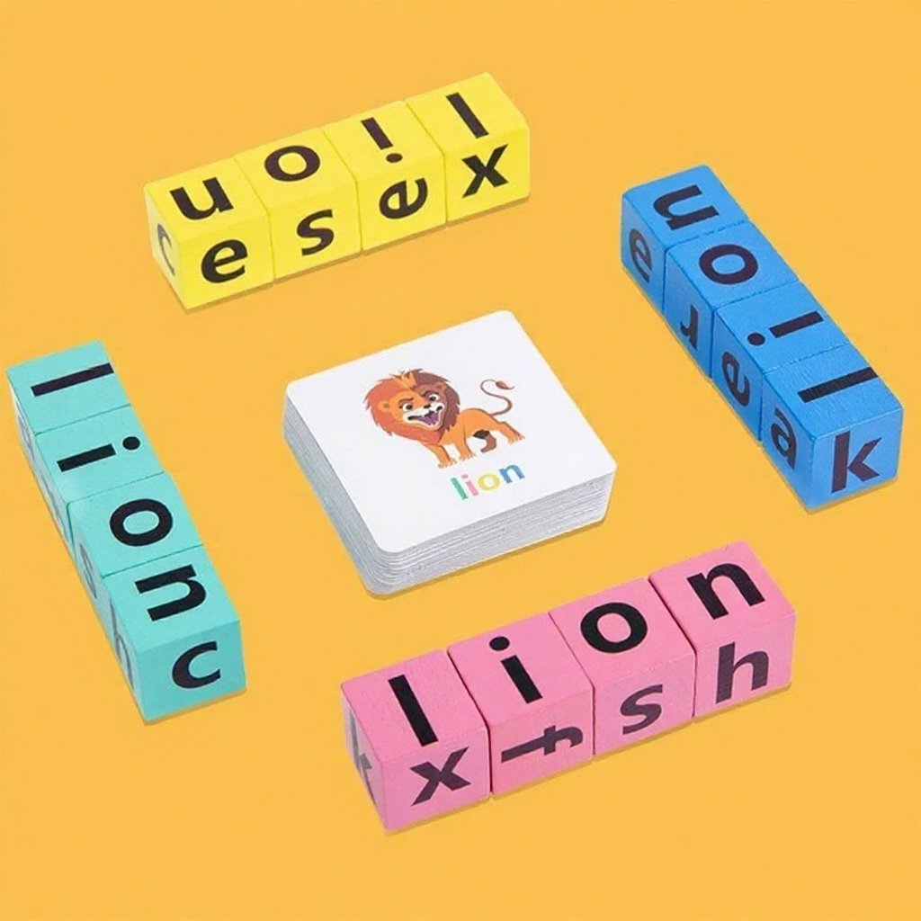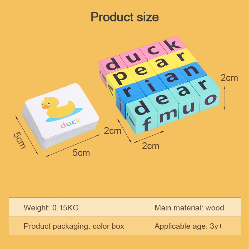 GEESO Letter Spelling Block Flash Cards Game English Words Early Educational Toys For Kids