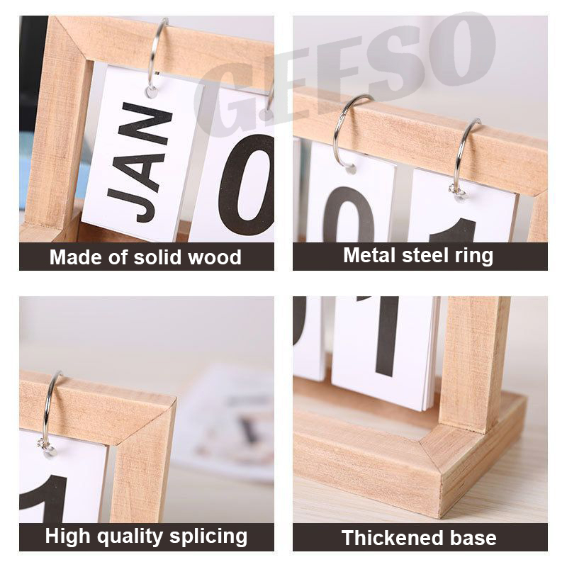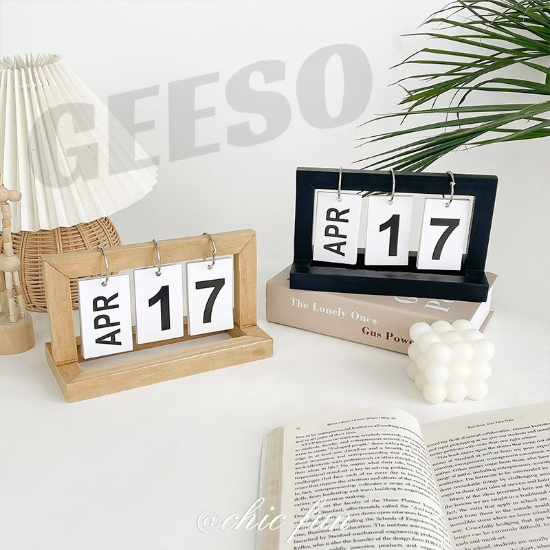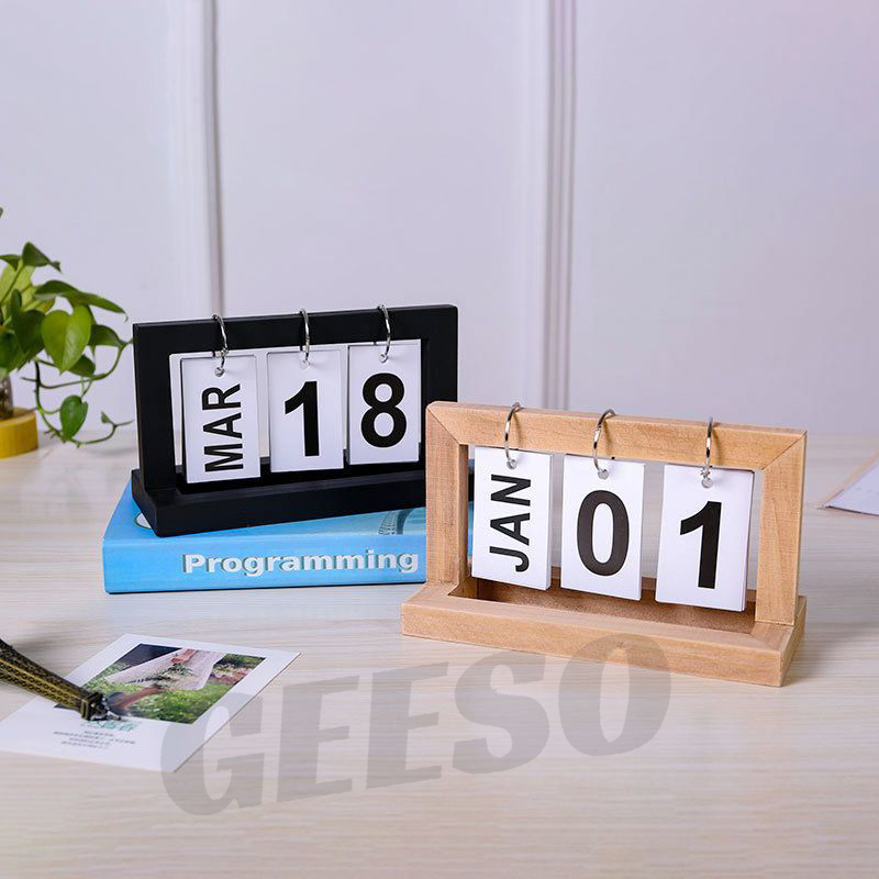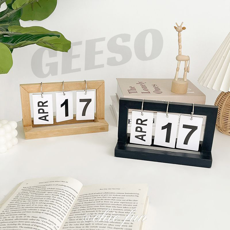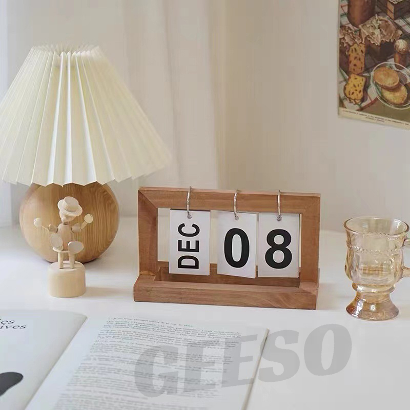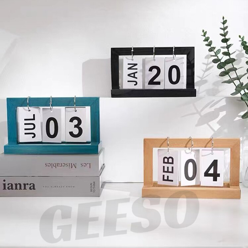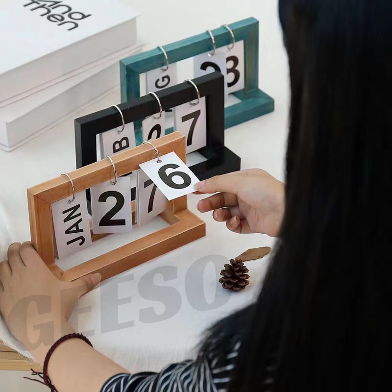 GEESO Wooden Flip Desk Calendar – Nordic Style, Multicolor, Real Wood Page Calendar for Home & Office Decor