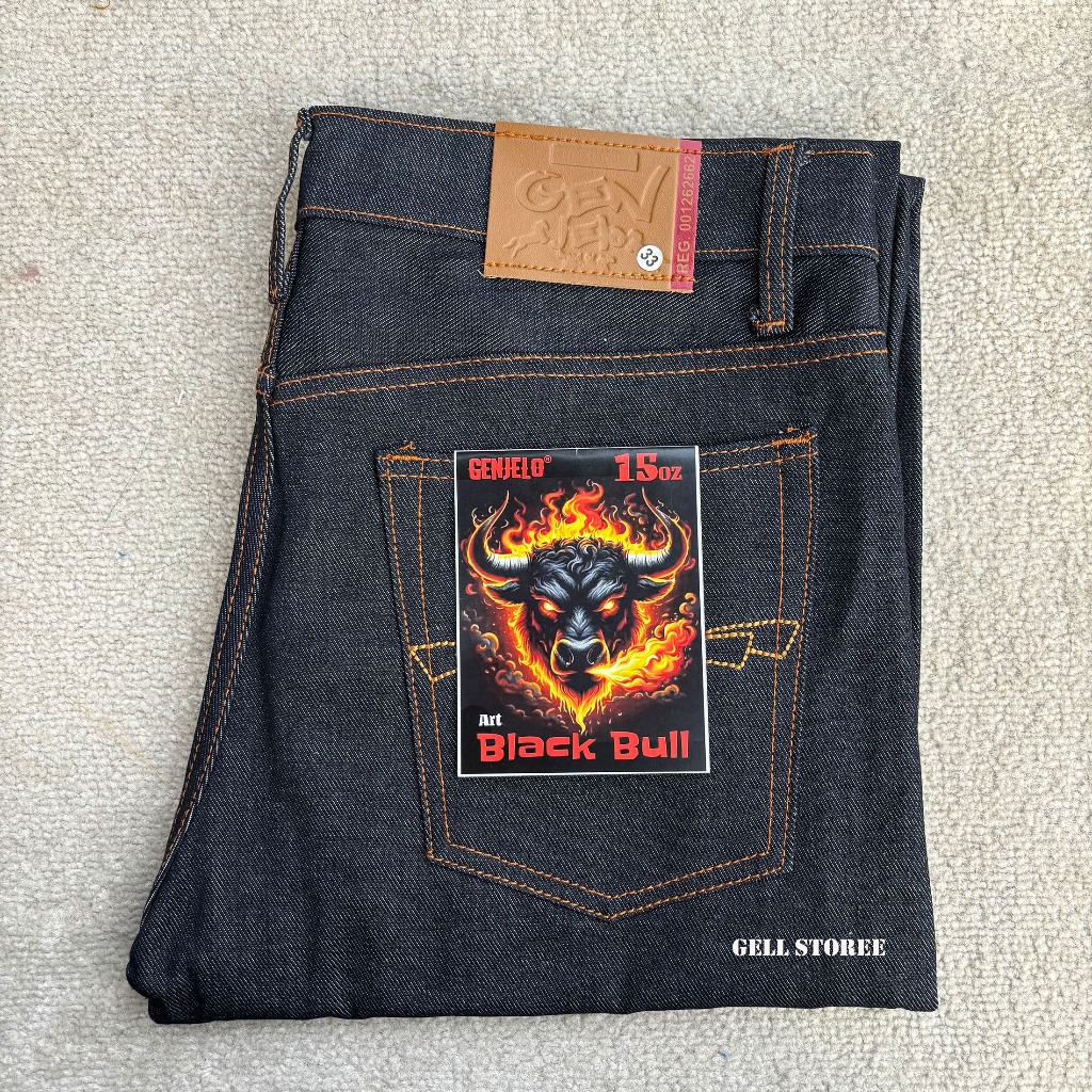 Genjelo Denim - Men's Denim Pants 15oz Selvedge Accent Unsanforized Original Article Black Bull