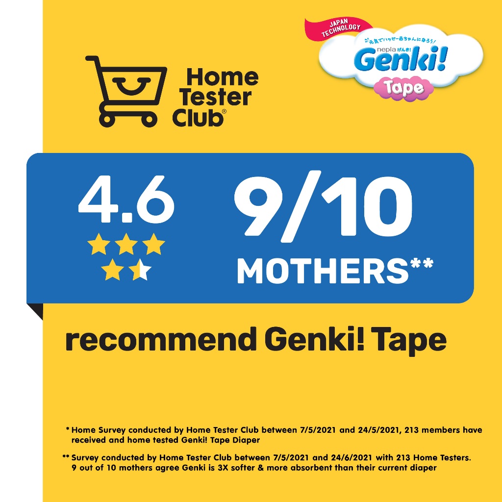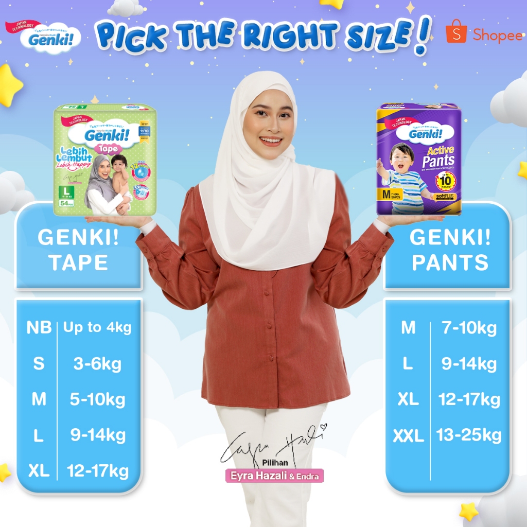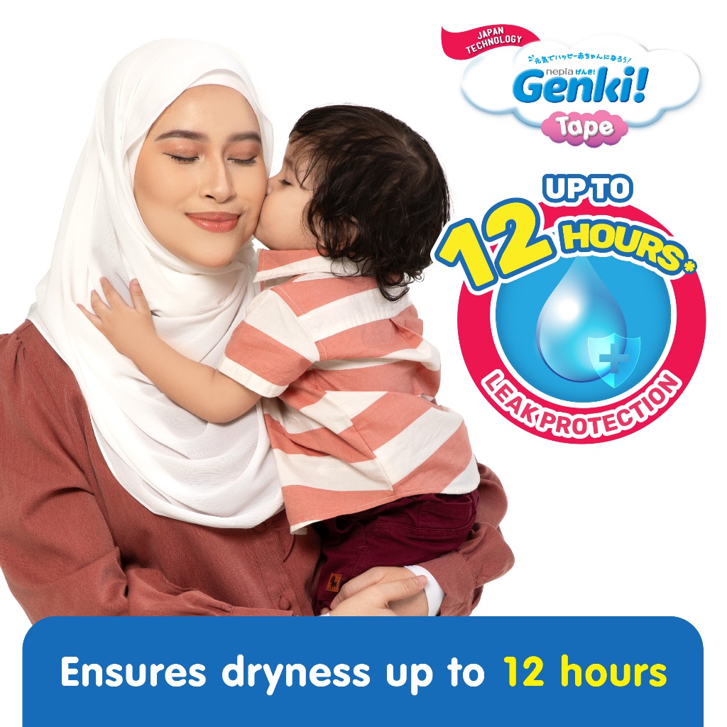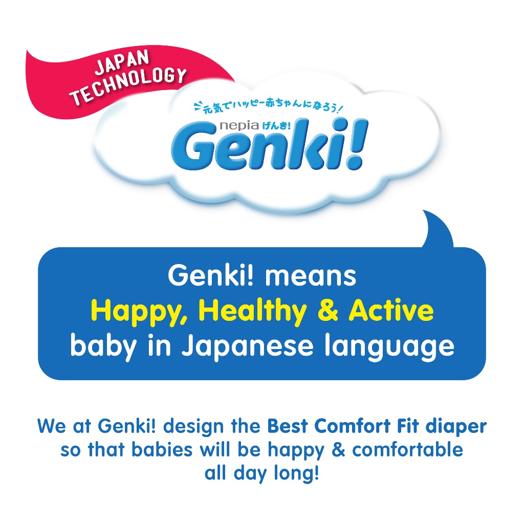 Genki! Regular Tape Diapers Baby - Size NB (28's)/S (28's)/M (24's)/L (20's)/XL (18's)