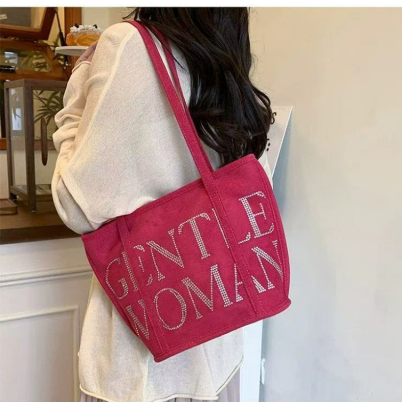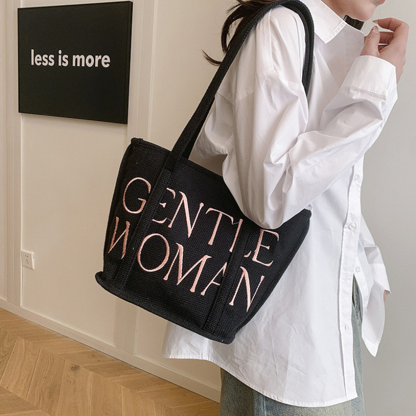 Gentlewoman Shoulder Bag Leisure Versatile Embroidery Cotton Linen Fashion Letter Tote Bags Handbag for Work & Shopping