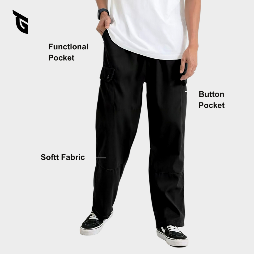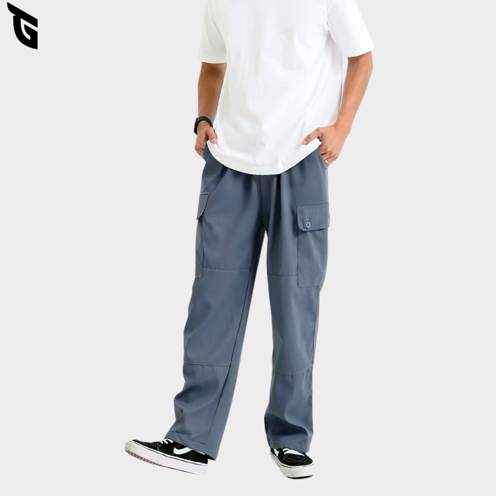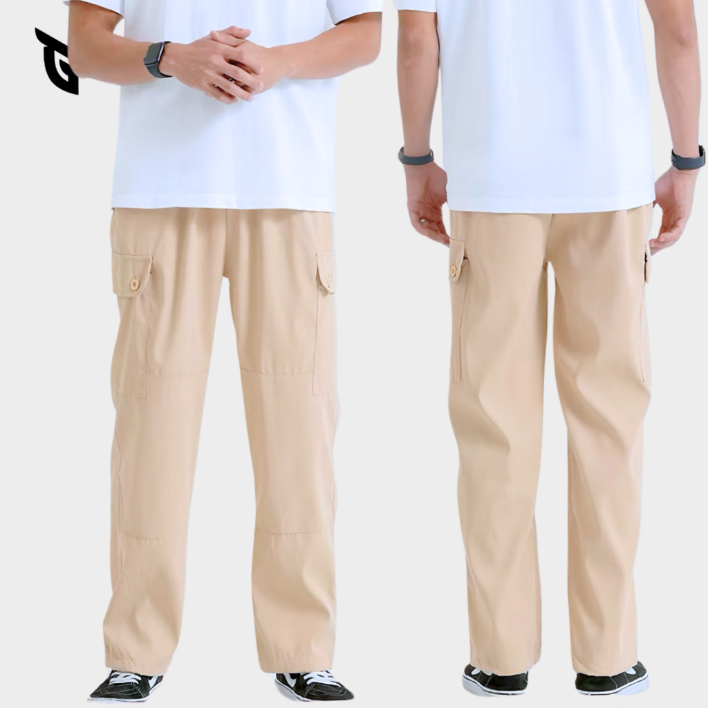 GEWORTH Men Long Loose Fit Straight Cut Pants Trousers Cargo Multi Pocket Seluar Panjang Cargo Pants Slack Ootd