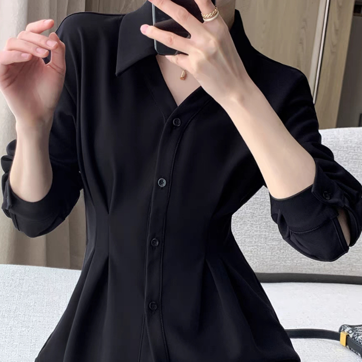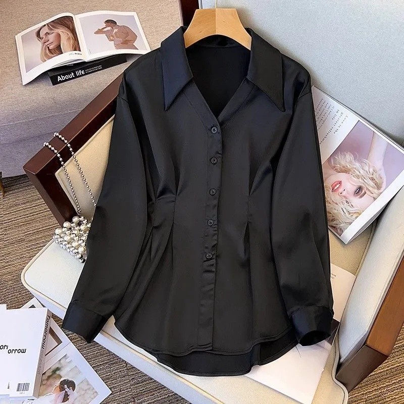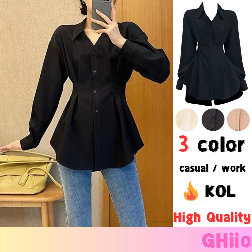 ?GHIIO? [ready stock in Malaysia] Blouse Women's Long Sleeved Shirt Autumn Korean Slim Waist-Tight Design Bottoming Shirt Plus Size baju