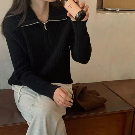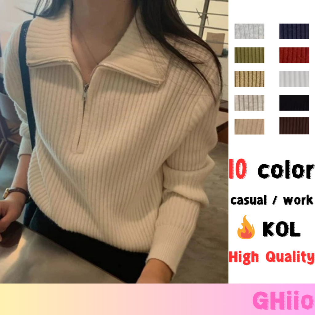 ?GHIIO? [ready stock in Malaysia] Korean Style Women Fashion Zipper Long Sleeve Knitted Sweater Loose and Versatile Outwear Top