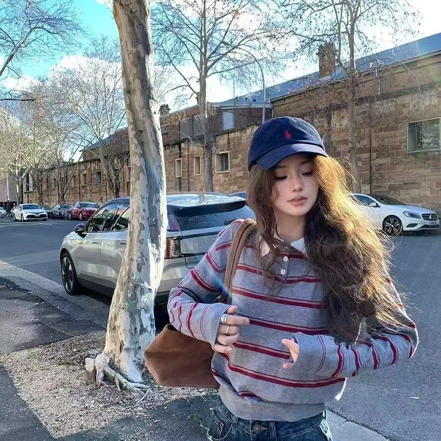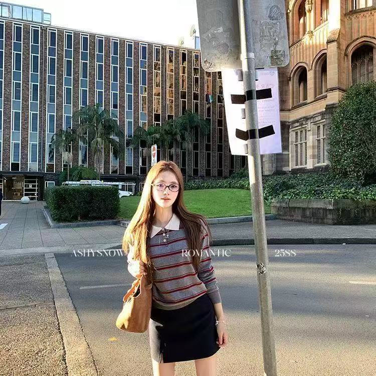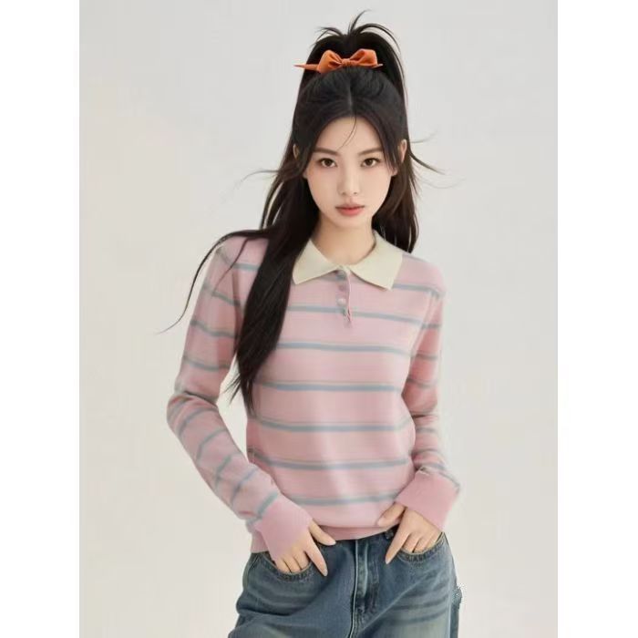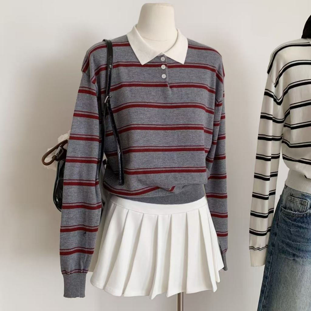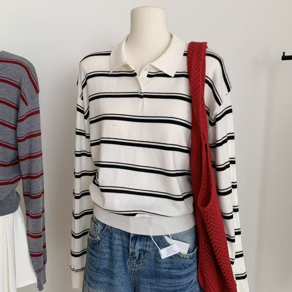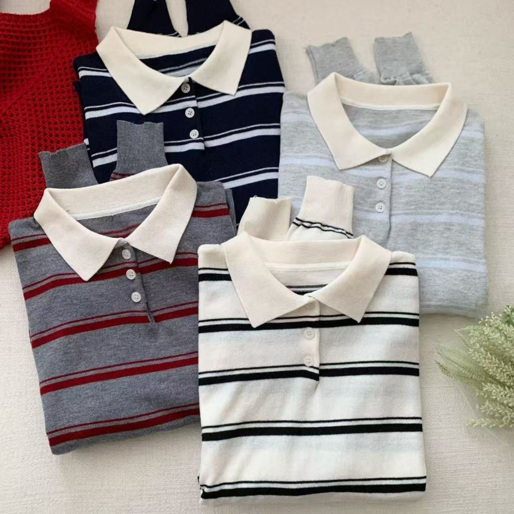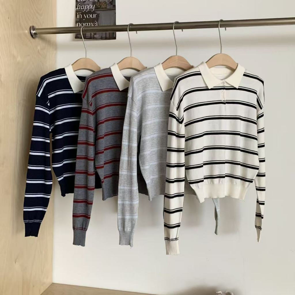 ?GHIIO? [ready stock in Malaysia] Stripe Polo Sweater - Autumn Knitwear for Women高质量时尚上衣