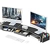 gianotter Dual Monitor Stand Riser, Desk Organizer With Drawer and 2 Pen Holders, Computer Monitor Stand, Shelf for Top of Desk, Black