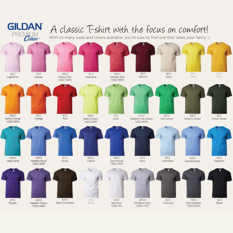 GILDAN World #1 76000 Premium Cotton Unisex Plain Round Neck T-Shirt Baju Tshirt Lelaki Cotton Plain T-shirt Top Seller