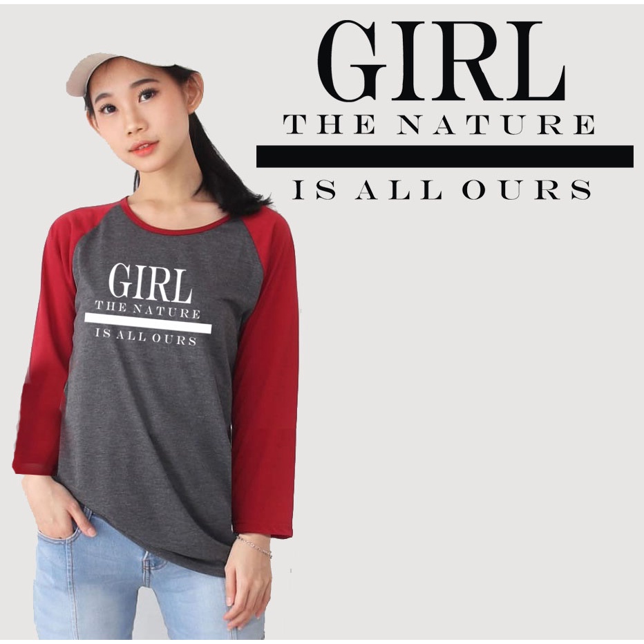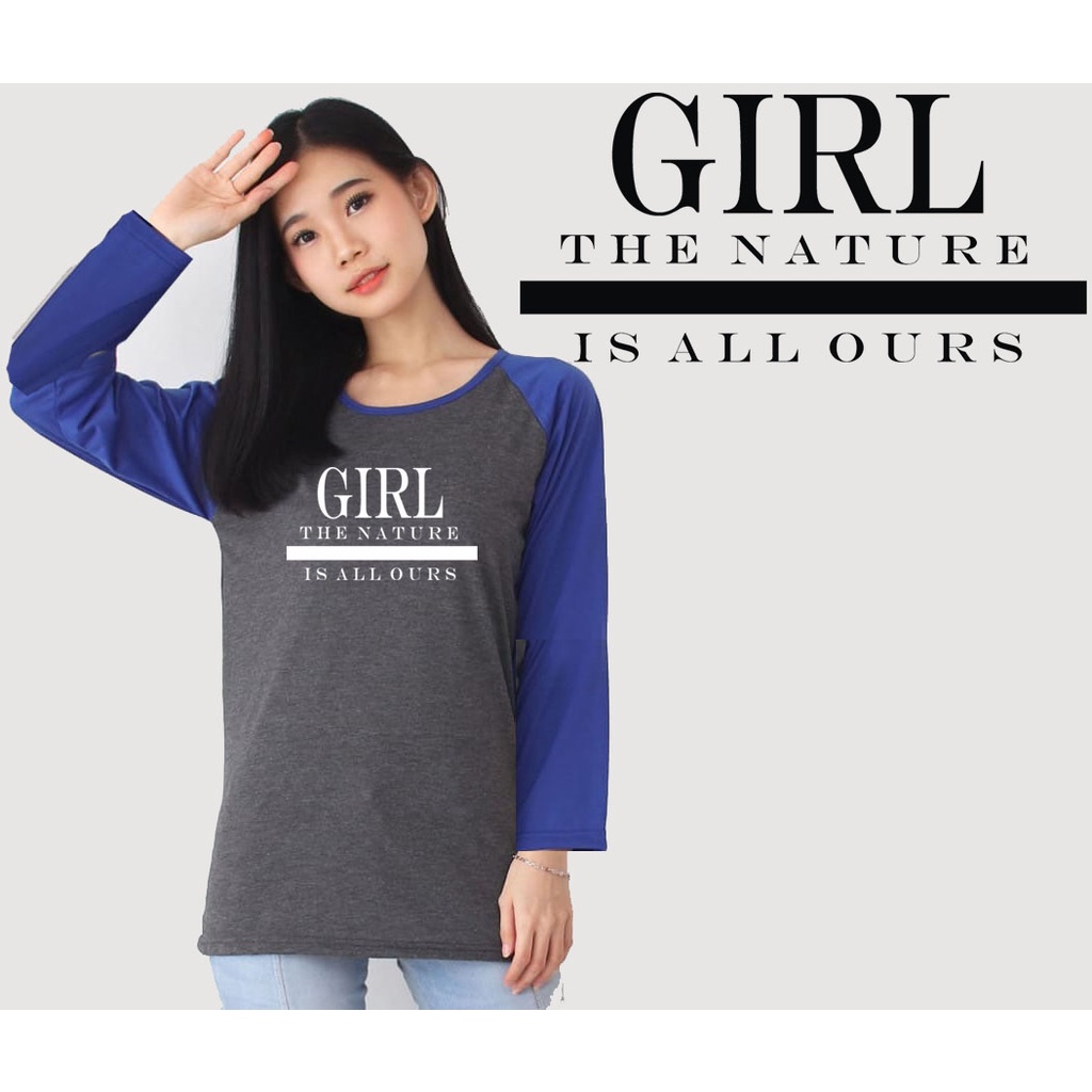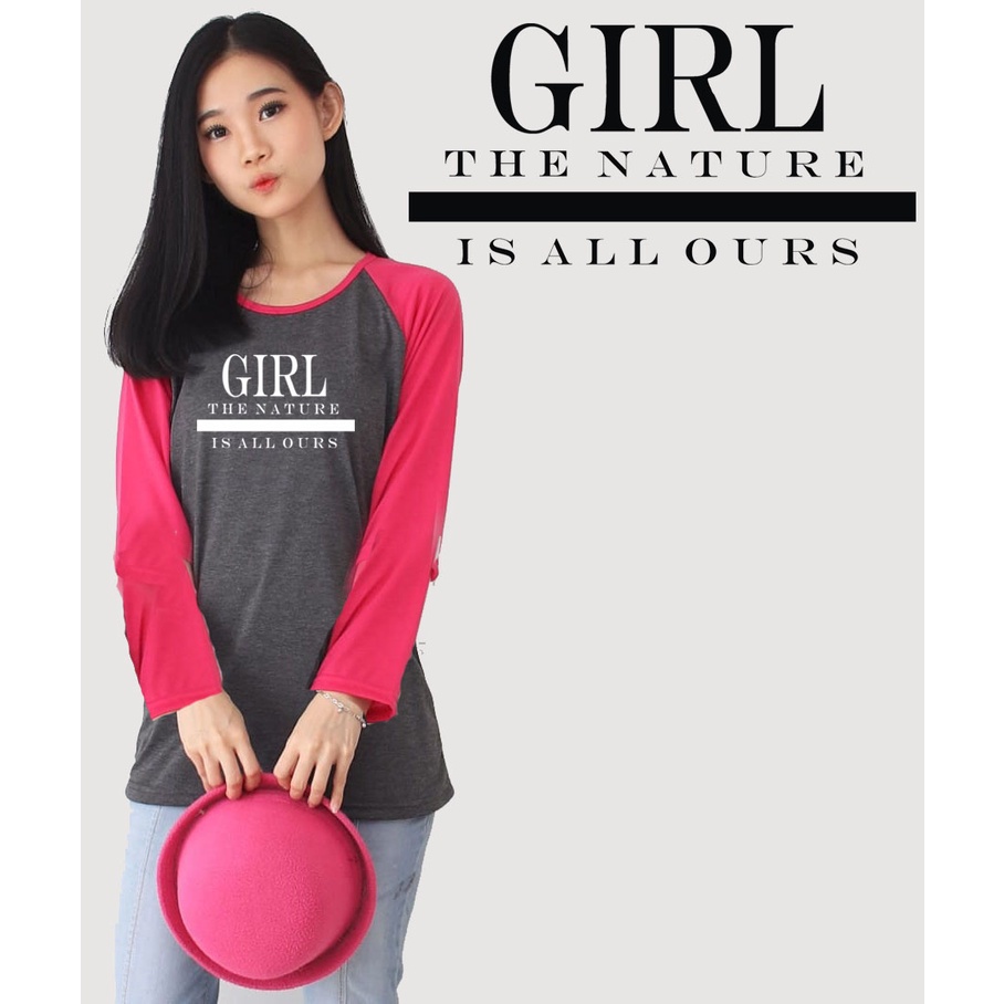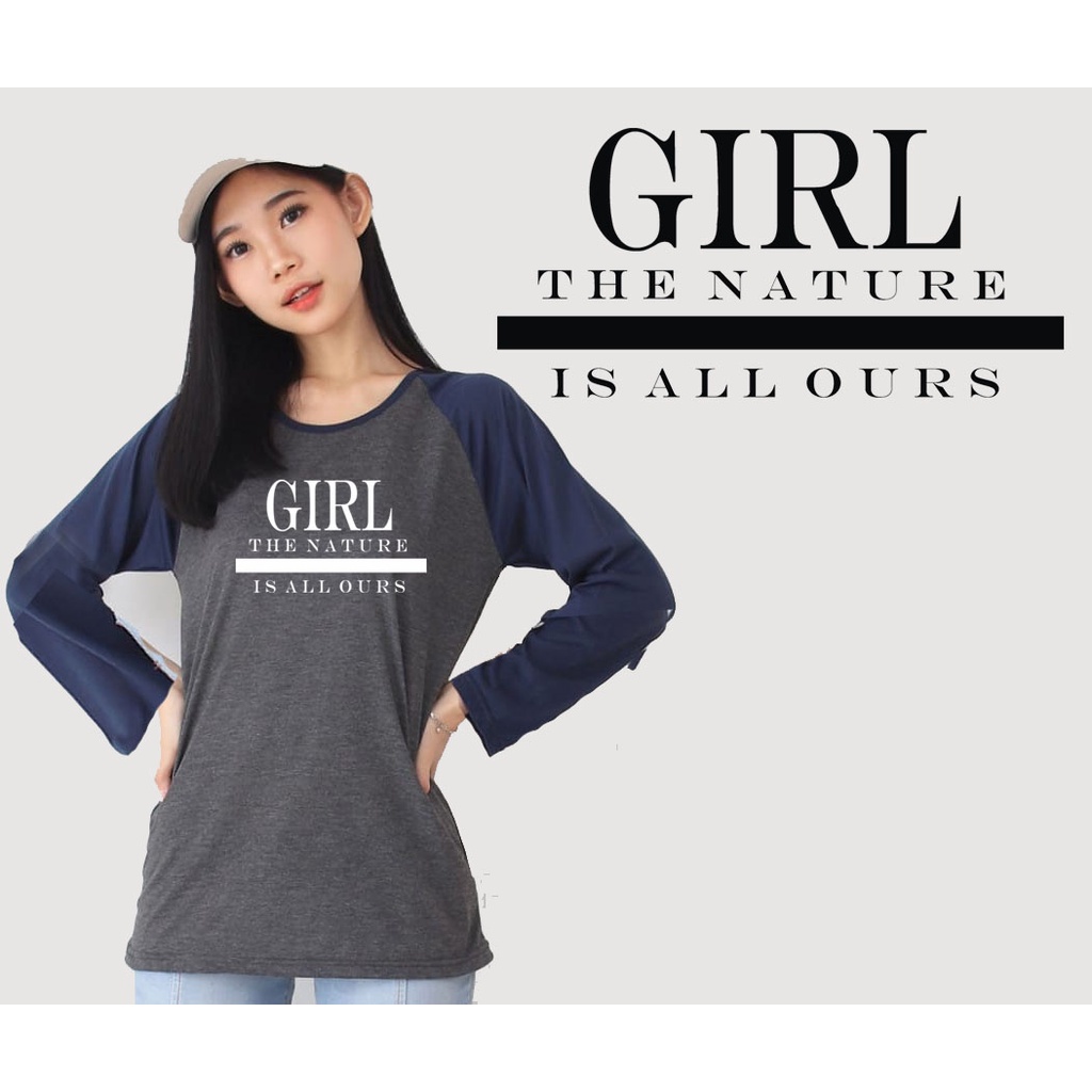 Girl Printed Long Sleeve Dark Gray Raglan T-Shirt