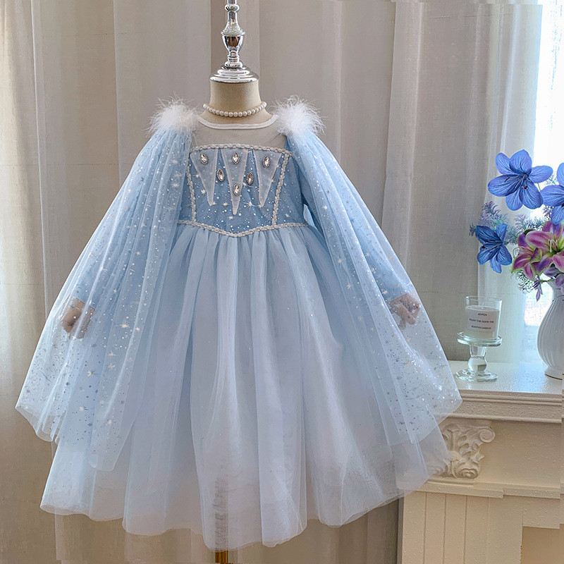 Girls Elsa Princess Dress Baby Girl Puffy Gauze Dress with Shawl Detachable Frozen Dress