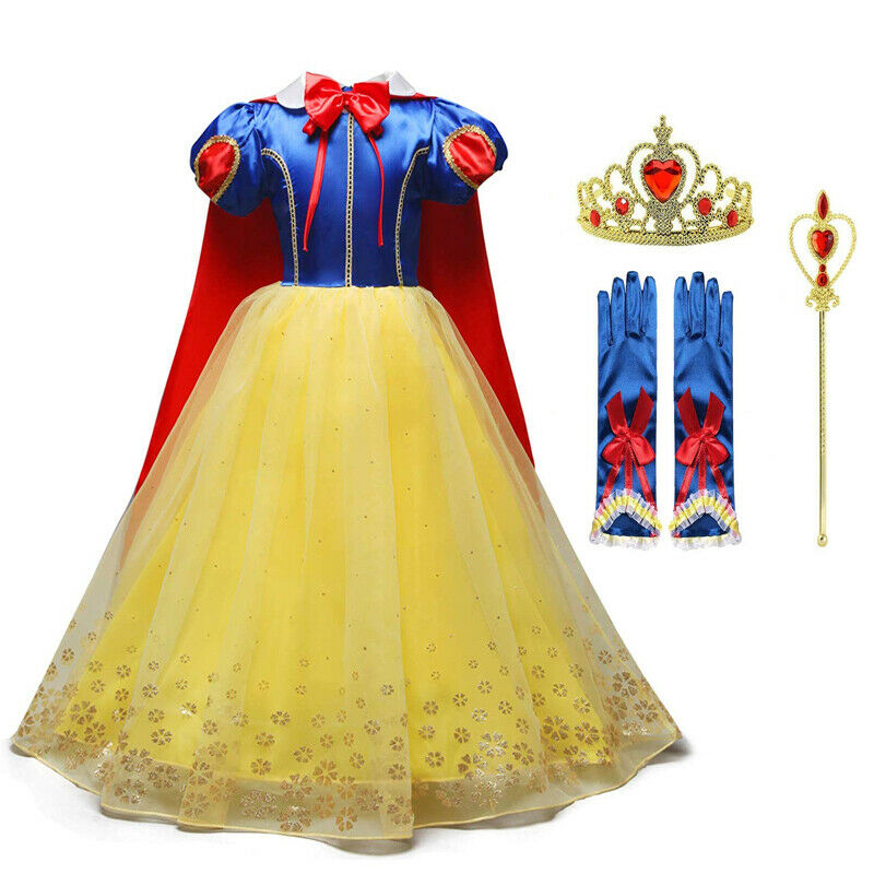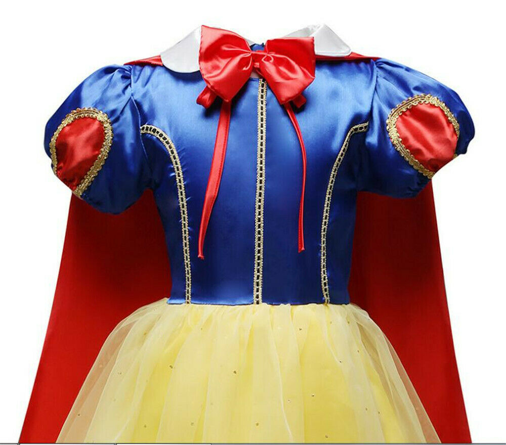 Girls SNOW WHITE Fancy Dress Costume Fairy Princess Dress Up Kids Age 3-10 Gifts