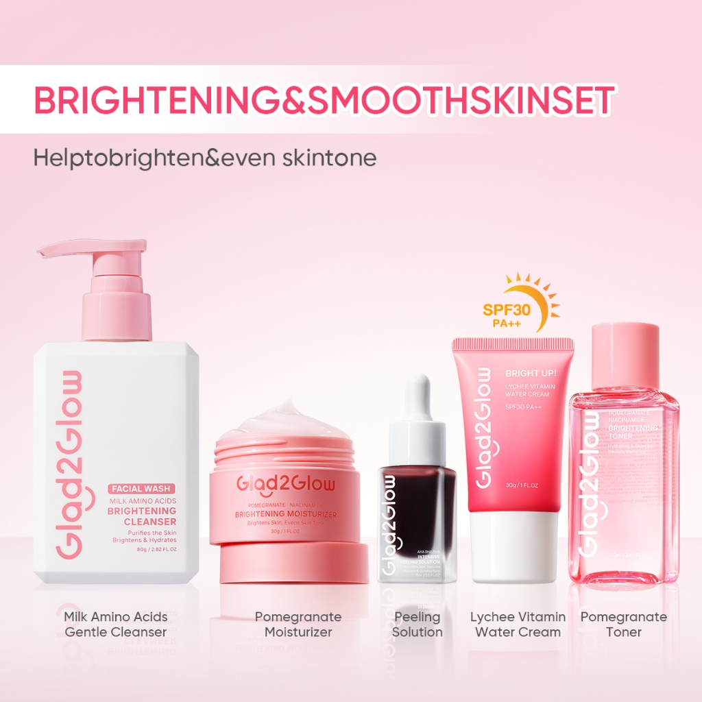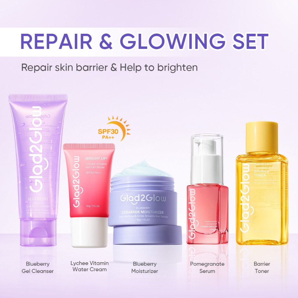 Glad2Glow 5PCS Skincare Set Moisturizer,Sunscreen,Cleanser,Serum,Toner Brightening|Repairing Barrier|Acne|Fading Spots