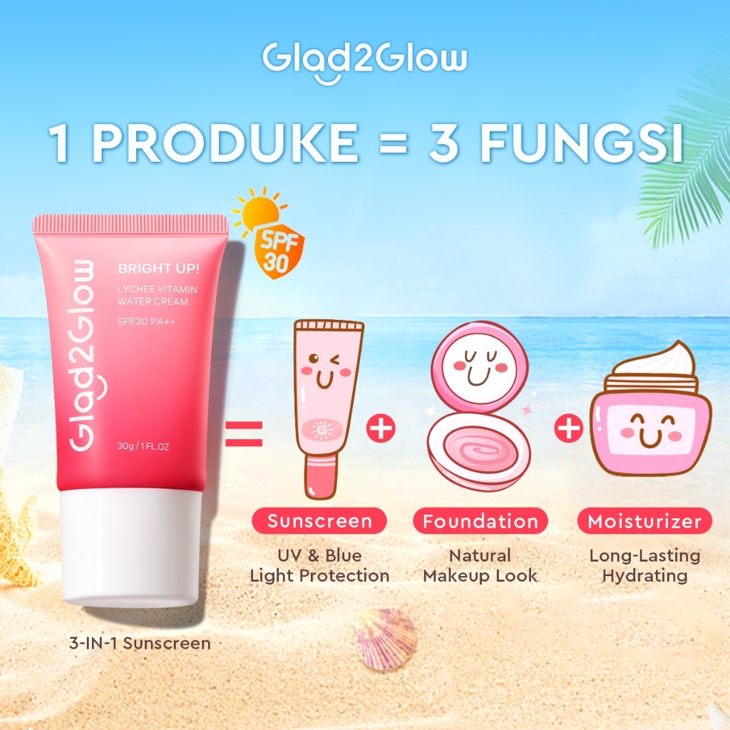 Glad2Glow Lychee Vitamin Water Sunscreen Cream 30g SPF 30 PA+++ UVA UVB Protection lazy cream