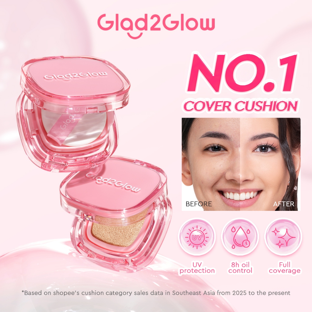 Glad2Glow Perfect Cover Cushion Foundation full coverage oil Control Concealer Long-Lasting Waterproof Makeup