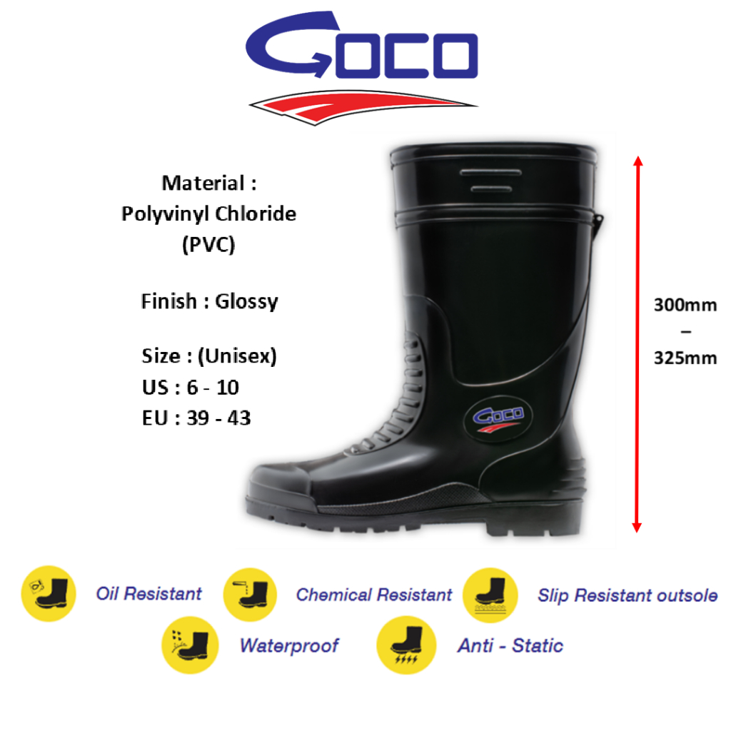 Goco 968 Black & Yellow Rain Boots | Rubber Boot | Kasut But Hujan Getah Hitam & Kuning I Wellington Boot