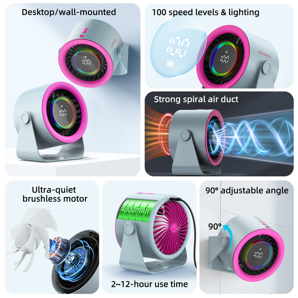 GOOJODOQ 2025 New High Speed ​​Desktop Fan 100 Speed ​​Digital LED Display RGB Wall Mount Adjustable Turbo Fan