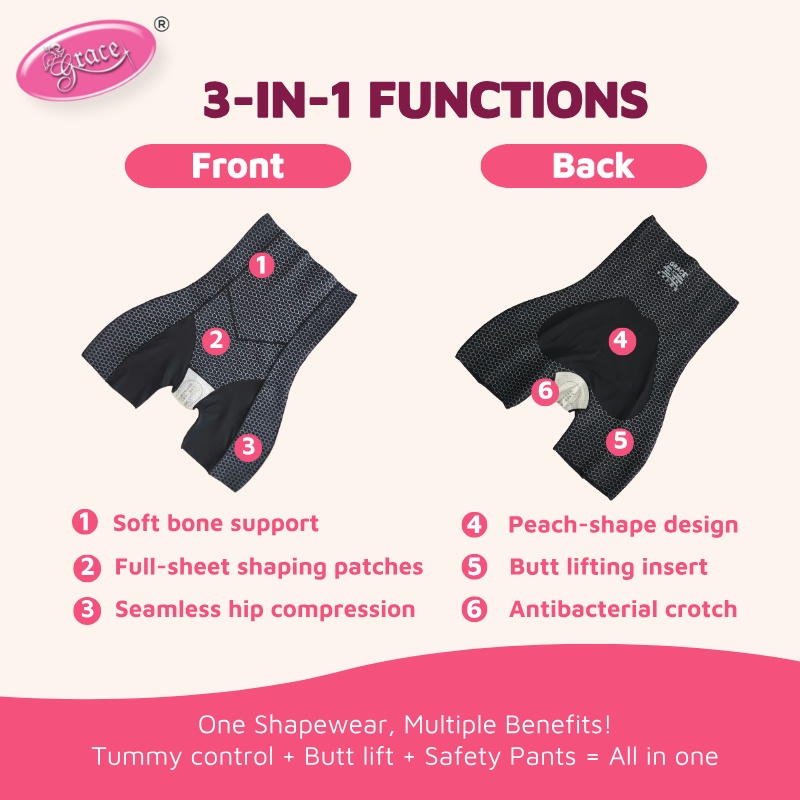 Grace Slimming Upgraded Seamless Highwaist Shaper Pants Shaping Beautywear- Black/Beige Short