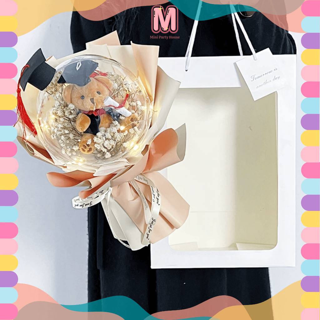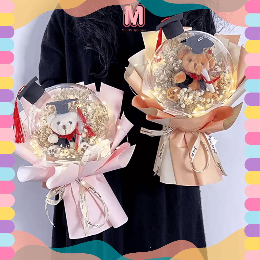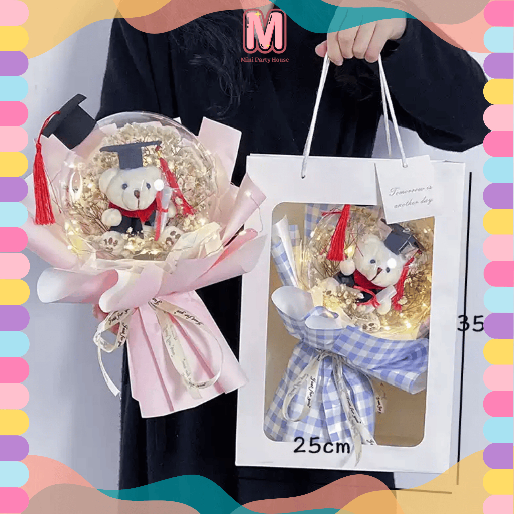 Graduation Bunga Konvo Mini Bear Bouquet 毕业花束 小熊花束 Gift For Girlfriend Birthday & Graduation Present 创意女孩礼物