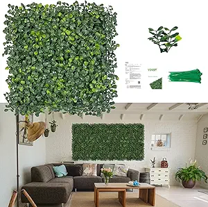 Grass Wall Panels, 10x10Inch 12Pcs UV-Anti Boxwood Greenery Panels with 50 Zip Ties, No Fade Artificial GrassWall Backdrop for Indoor Outdoor Privacy, Birthday Wedding Decor, Home Kitchen Decor