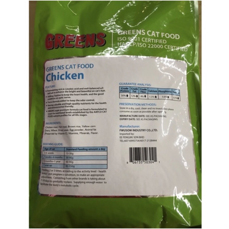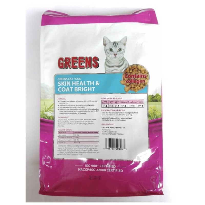 GREENS ADULT & KITTEN & MOTHER & BABY CAT FOOD 8KG / MAKANAN KUCING