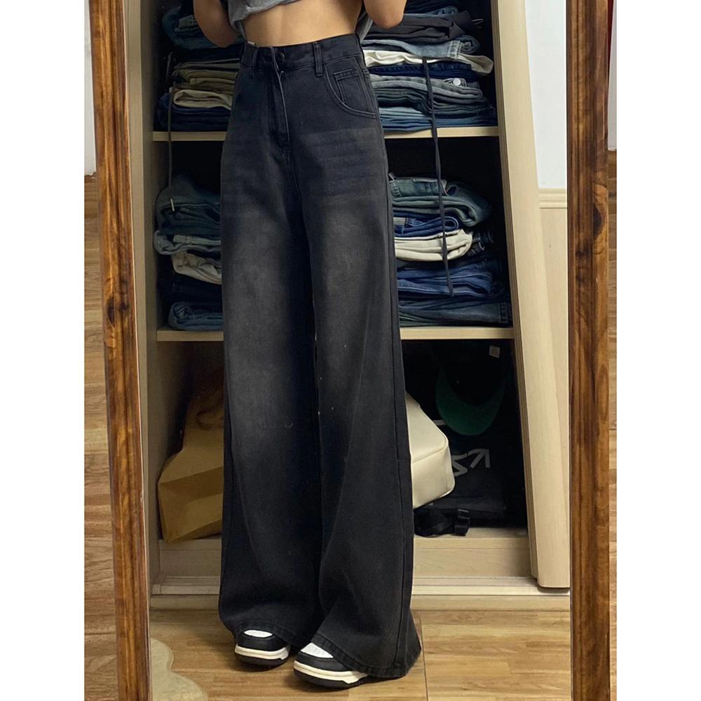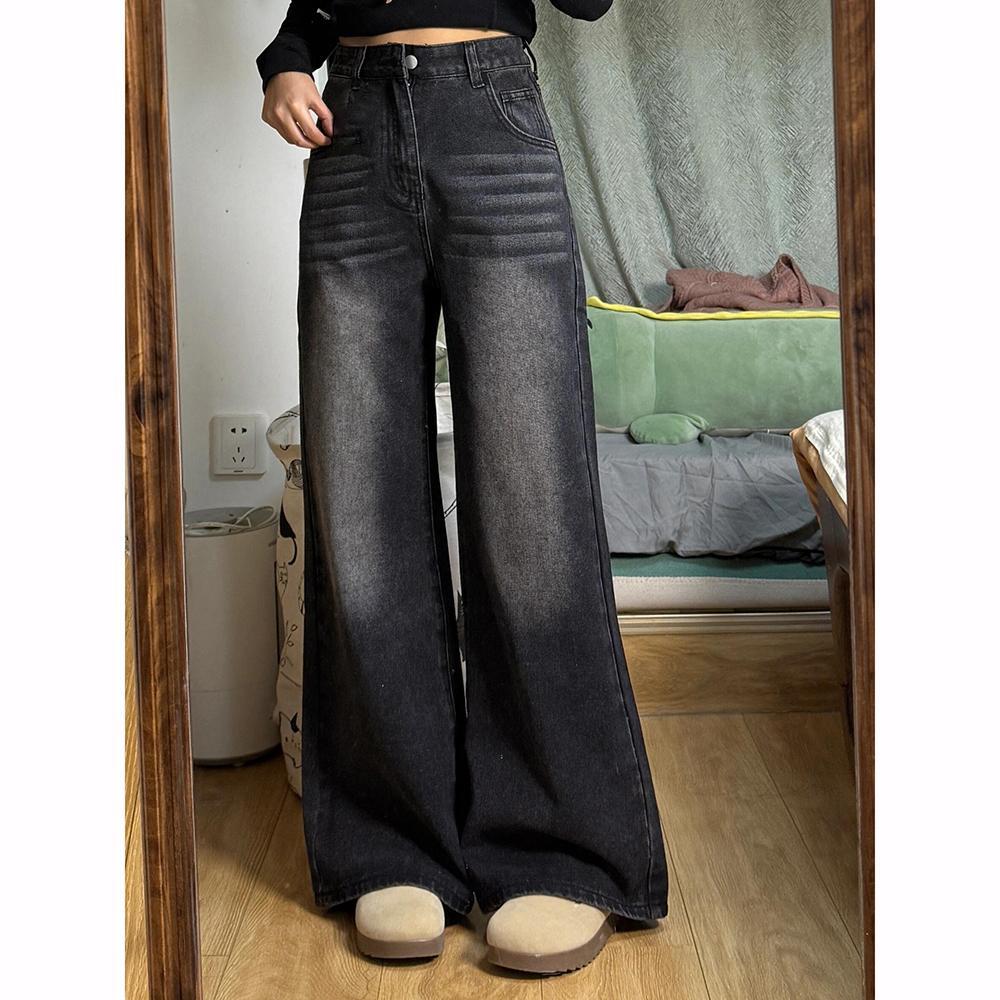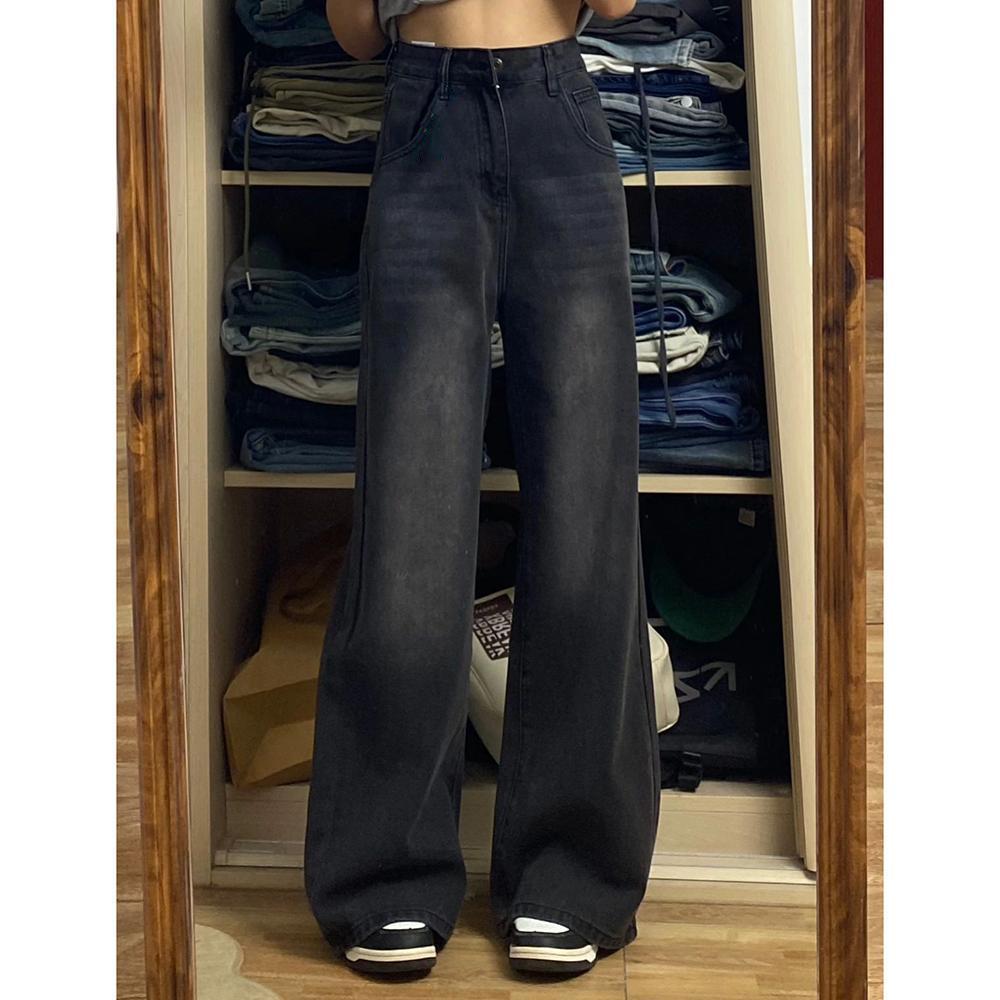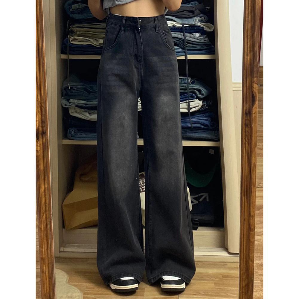 Grey casual wide-leg pants baggy pants High waist straight pants High quality jeans