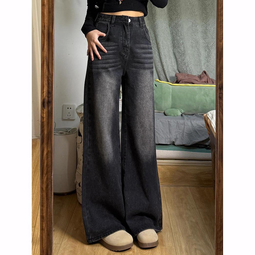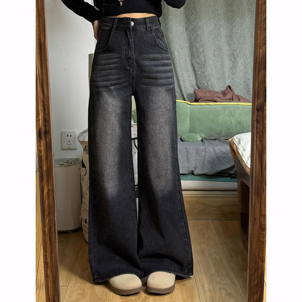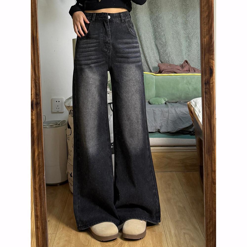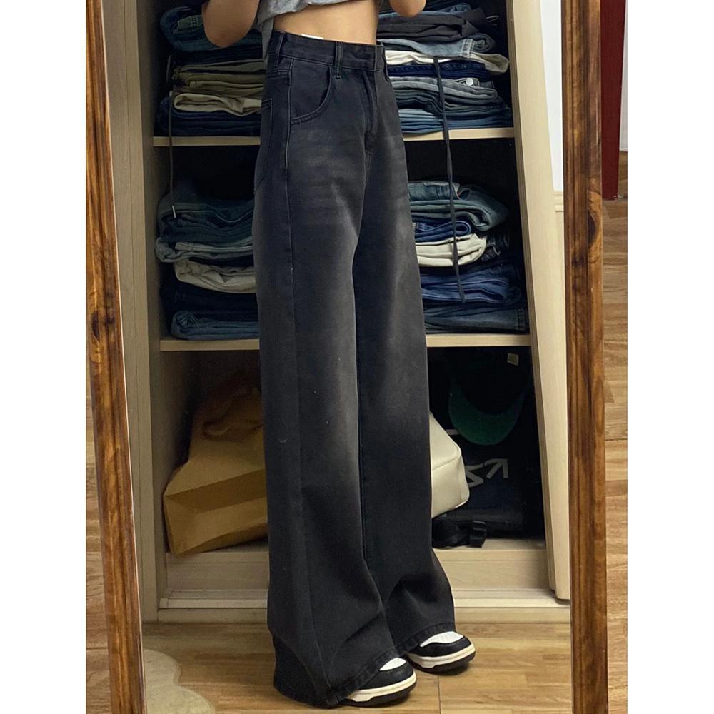 Grey casual wide-leg pants baggy pants High waist straight pants High quality jeans