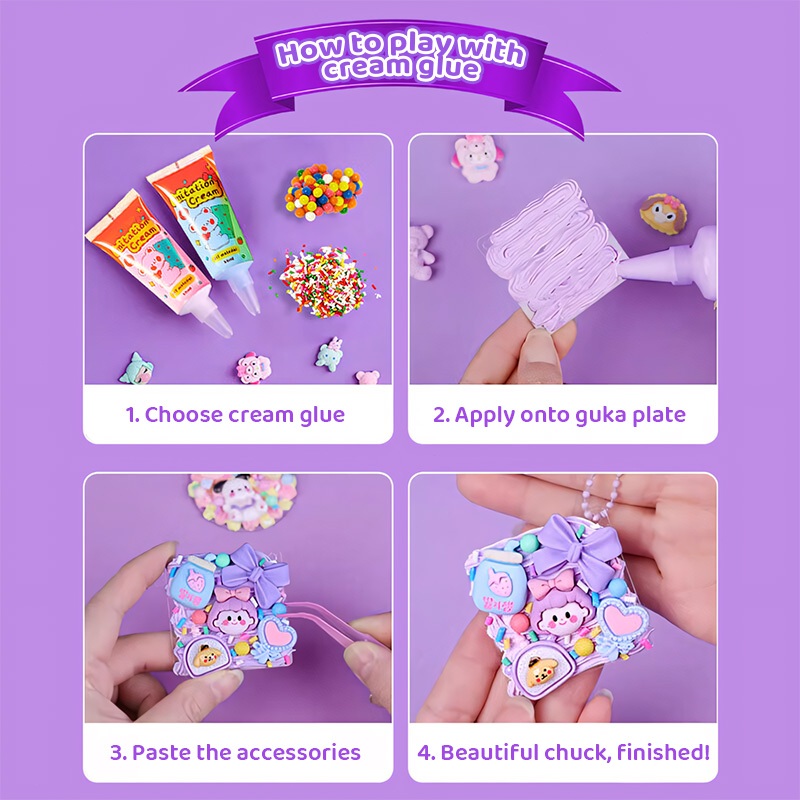 Guka Keychain Set Mainan Kanak Kanak Perempuan Guka Set Box Murah Gila Toys For Kids Girl Guka Cream Glue DIY Set Kids Gift Set Birthday School Stationery Set DIY Sticker Educational Toys For Kids