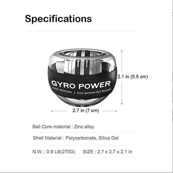 Gyroscopic Powerball 360° Fitness Auto-Start Wrist Power Gyro Ball, Forearm Arm Exerciser Hand Muscle Force Trainer